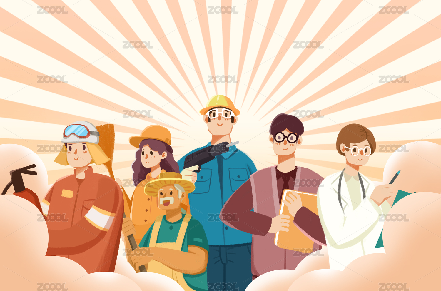 五一劳动节致敬职业劳动者插画人物劳动海报
