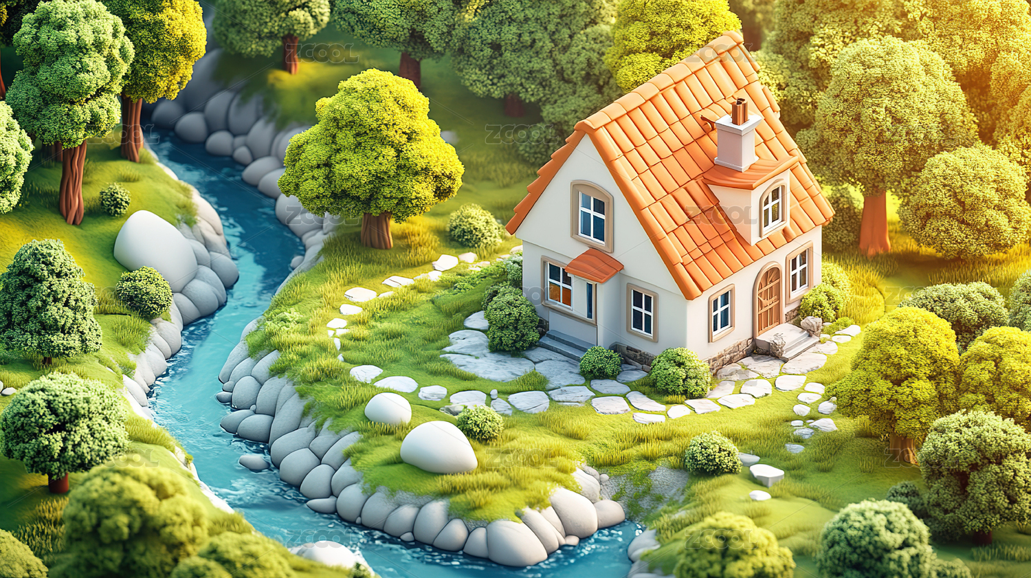房屋,3D,建筑,渲染,住宅,效果图,别墅,花园,庭院