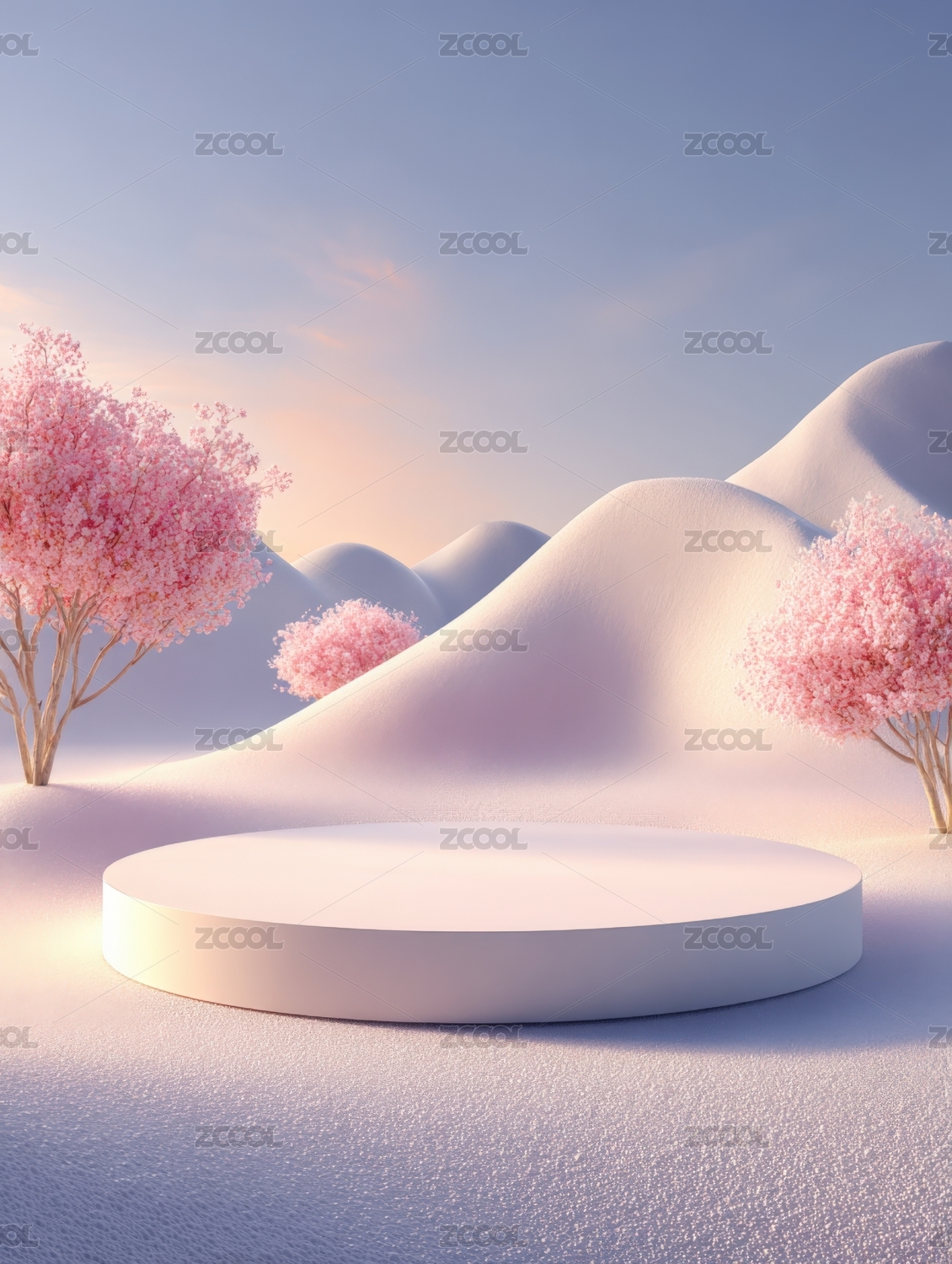 DXCZ202401,电商,展台,展示台,石板,亚克力,几何体,自然风光,冬季,冬天