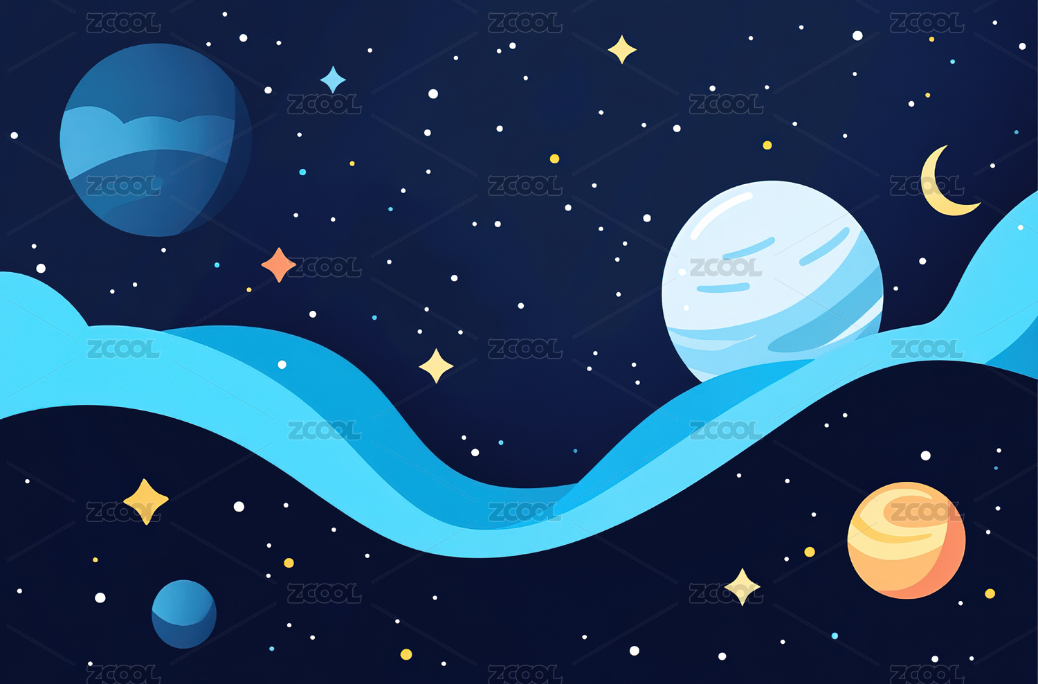 矢量扁平星空星球在深邃太空中