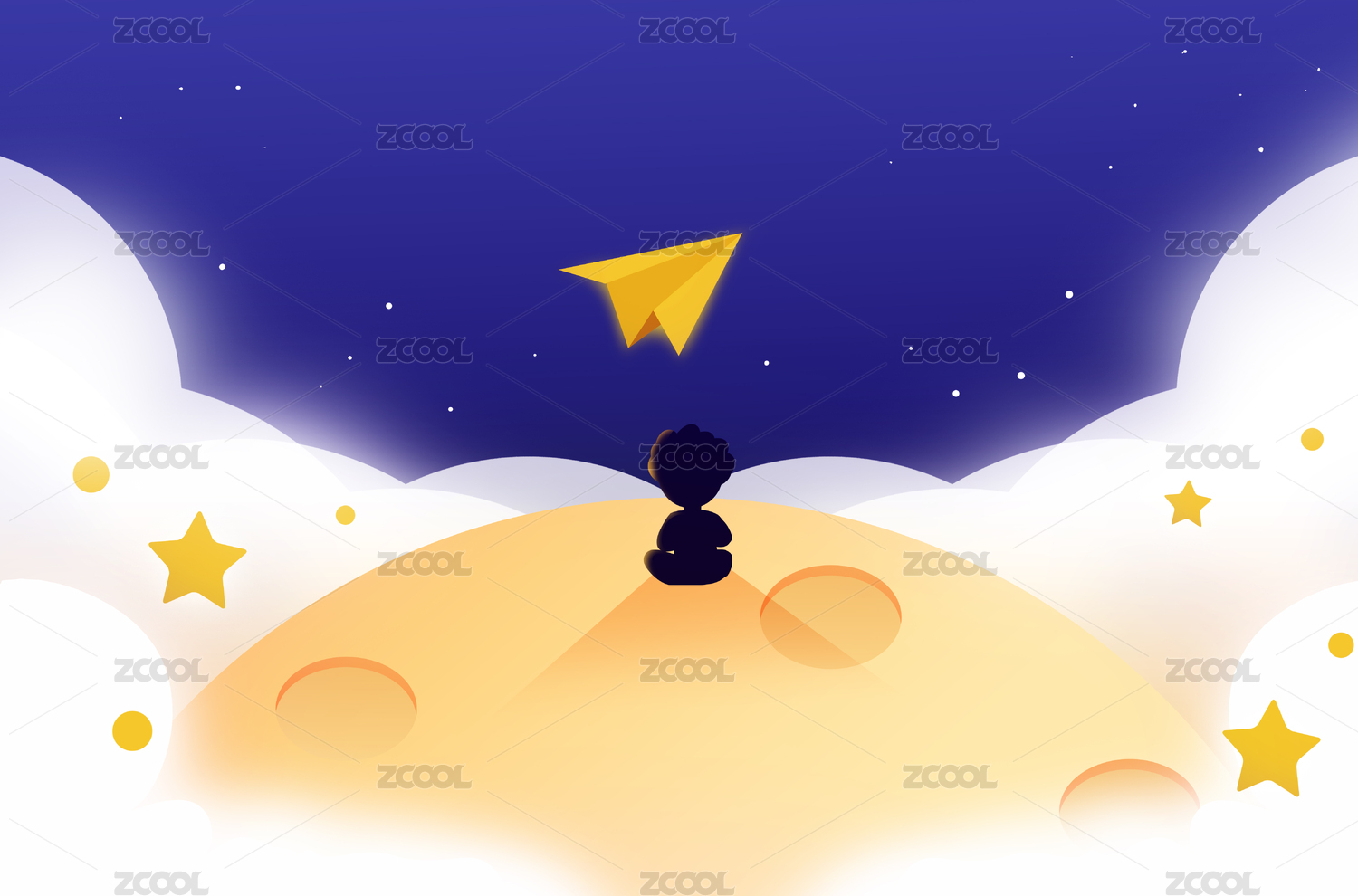 卡通手绘儿童仰望星空插画