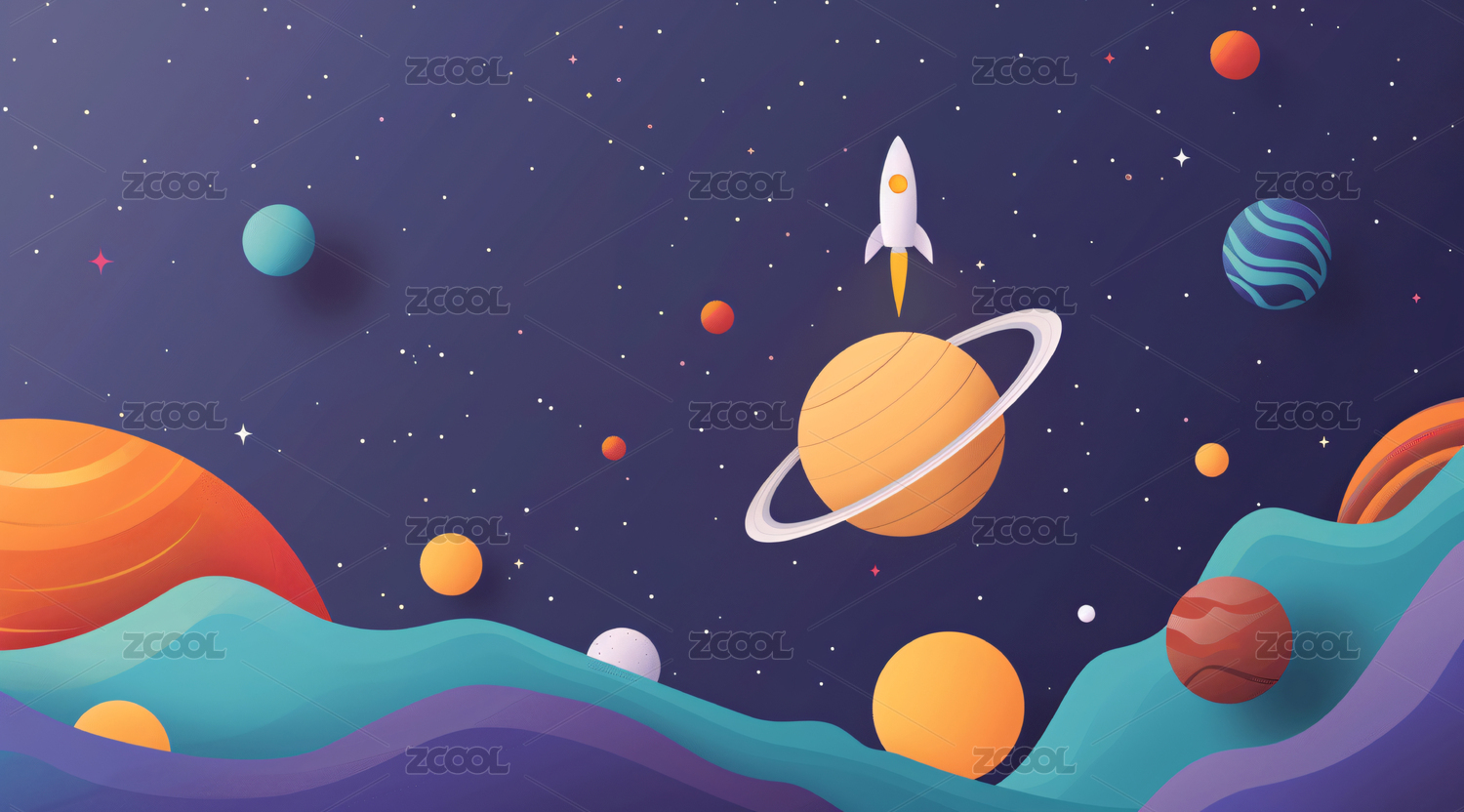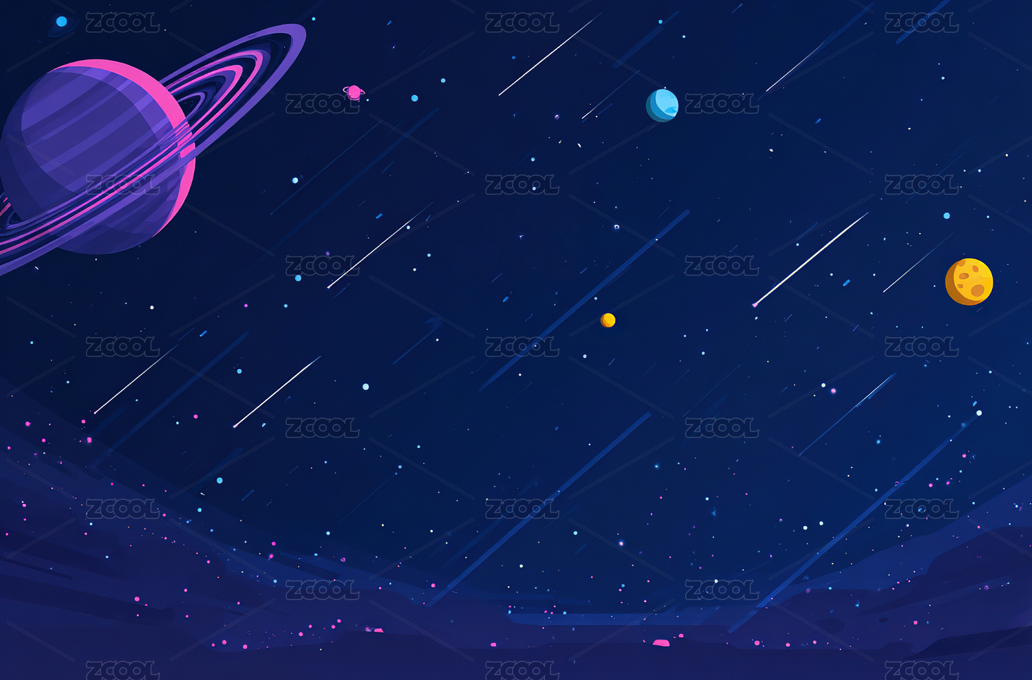 星空中的流星和星球图案,宇宙创意插画背景