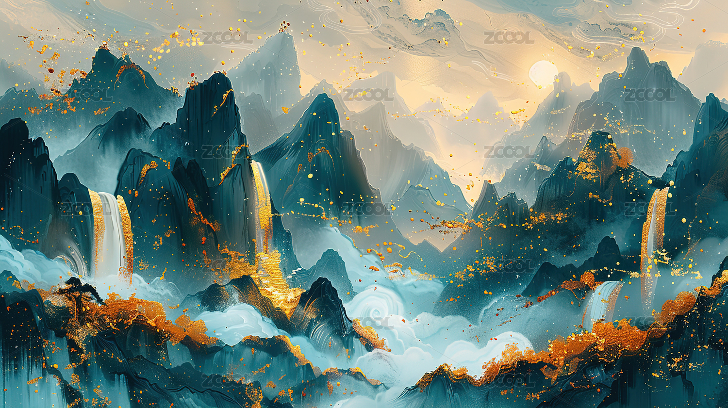 金色山峦水墨蓝图
