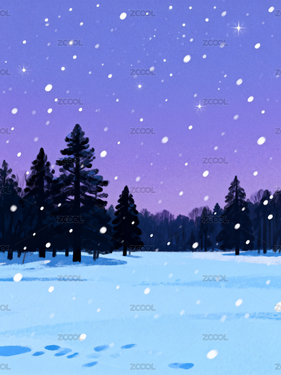 冬天,户外,极简,雪景,蓝色,插画,扁平,雪,山,背景