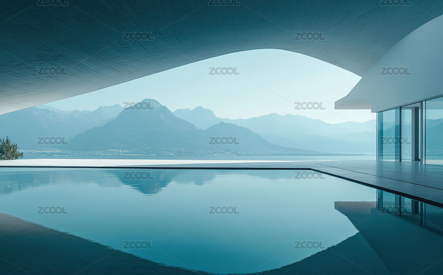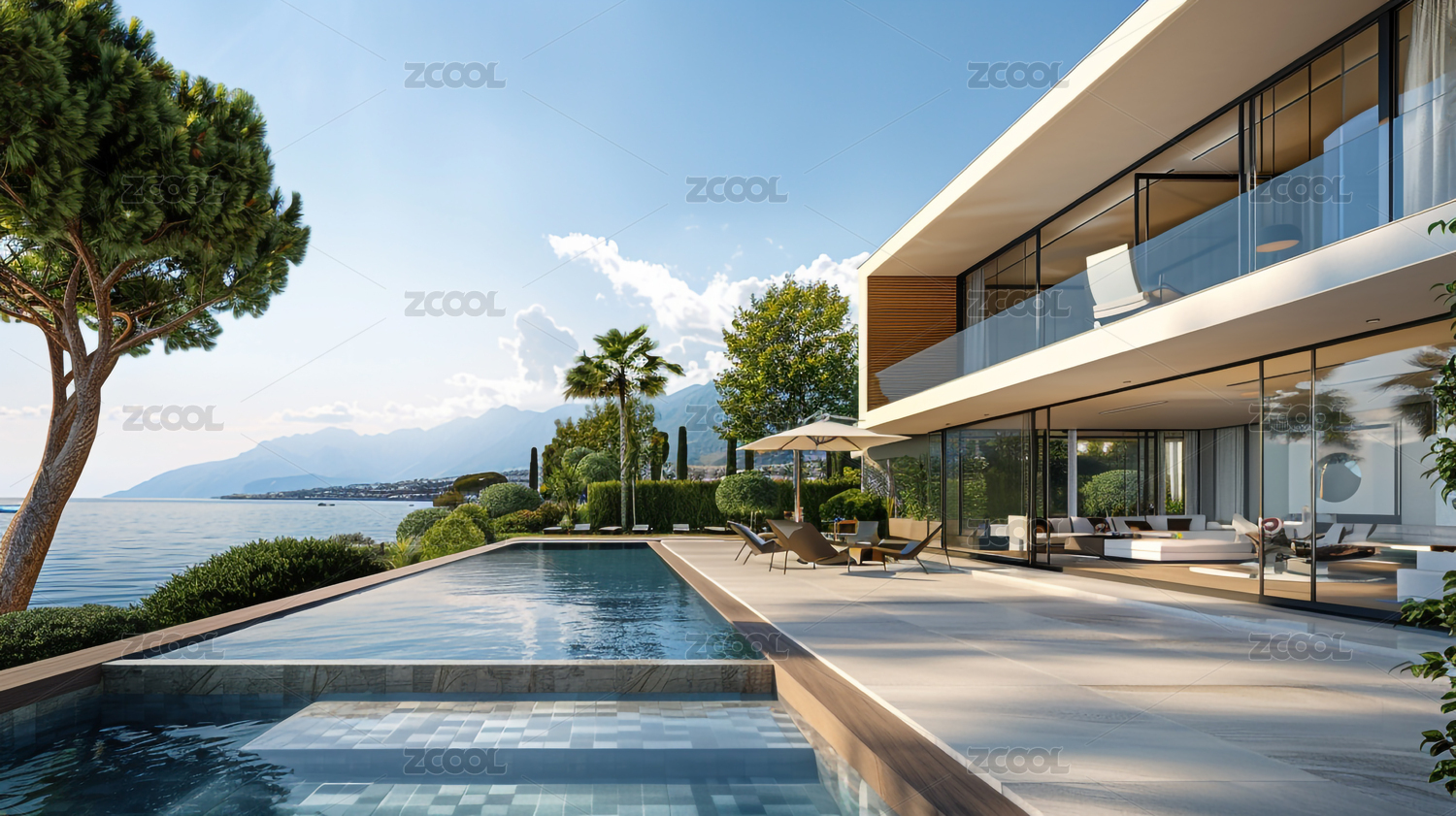 豪华,庭院,泳池,现代,别墅,海景房,房地产,建筑,室外,海水