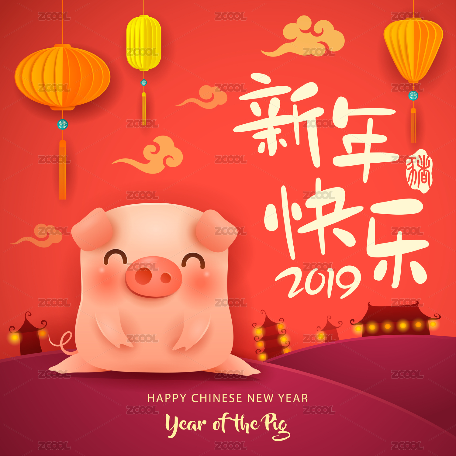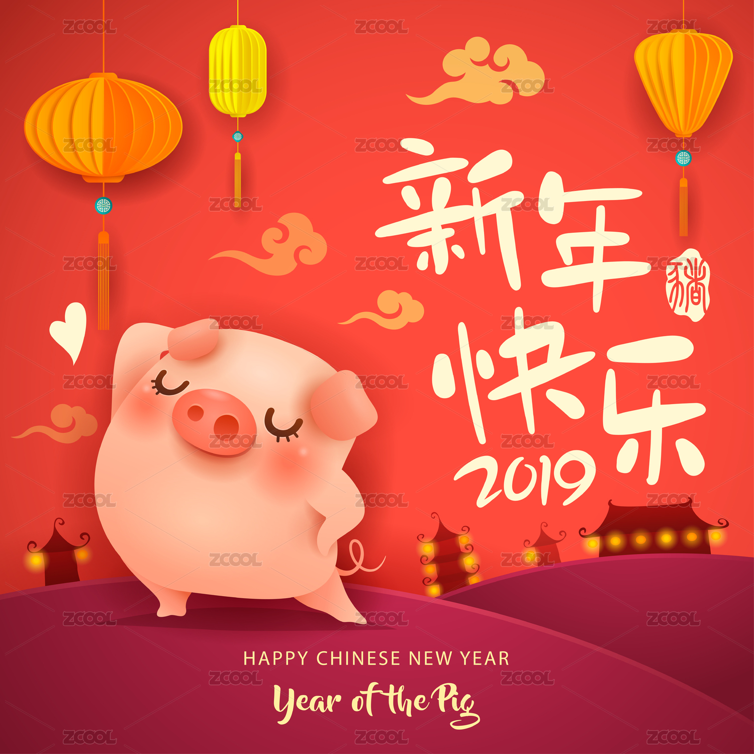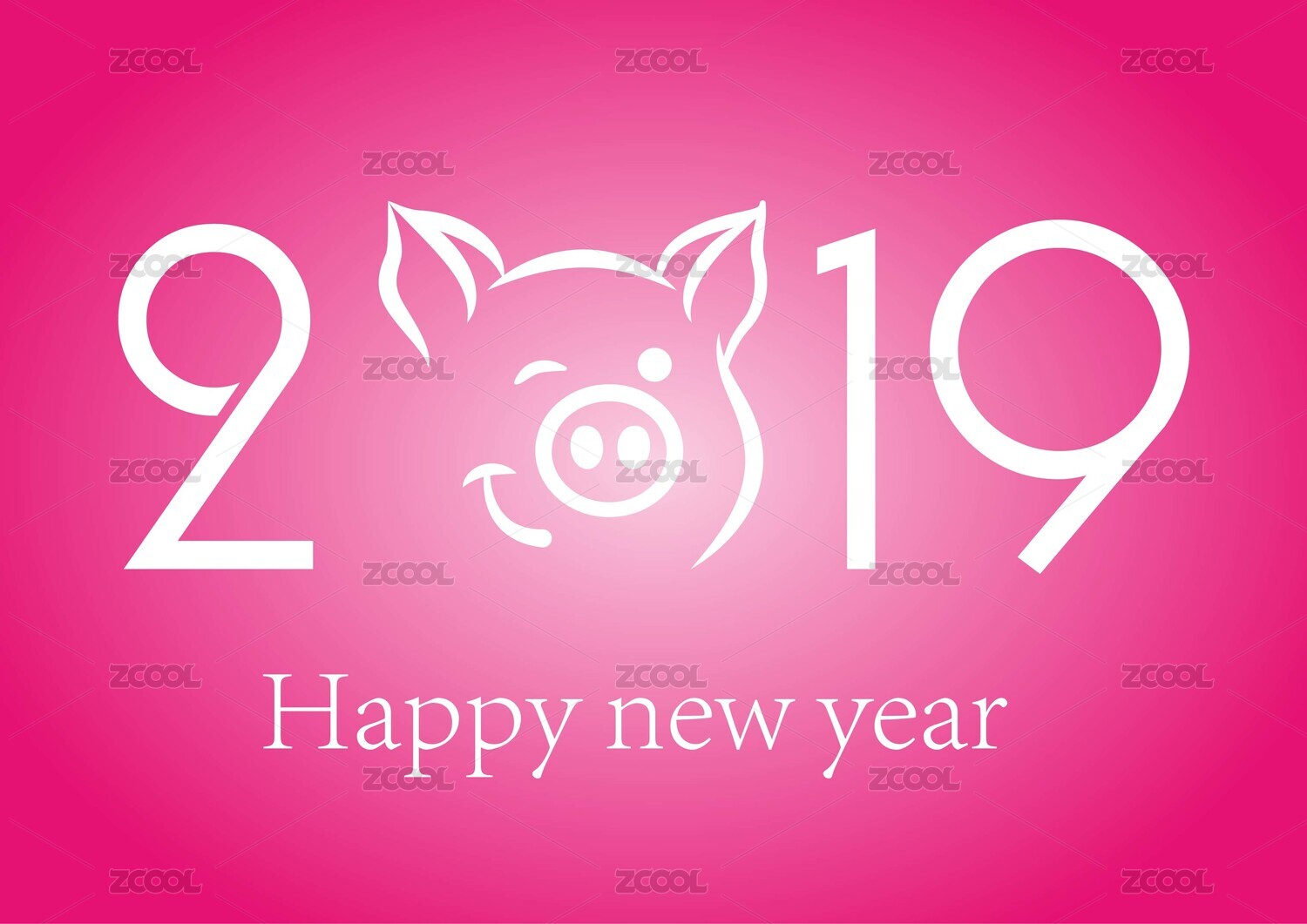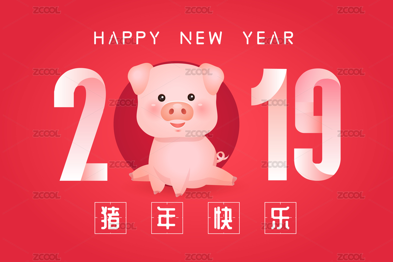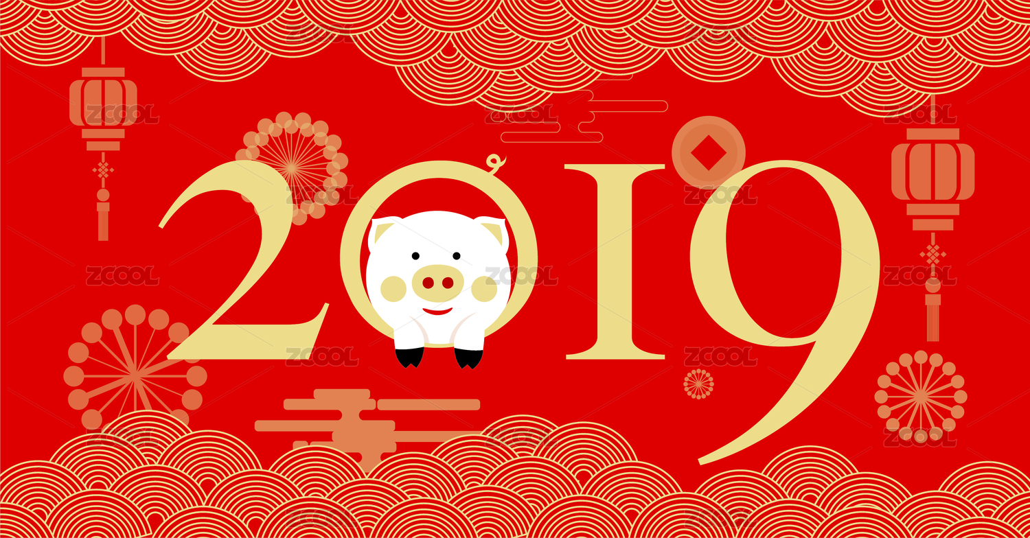 2019年新年快乐,猪年快乐,新年贺卡、海报、横幅