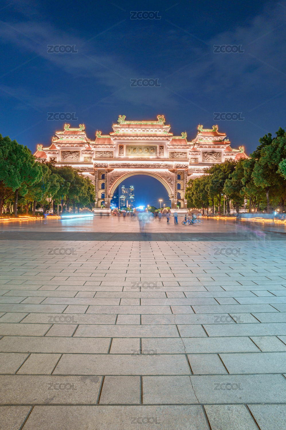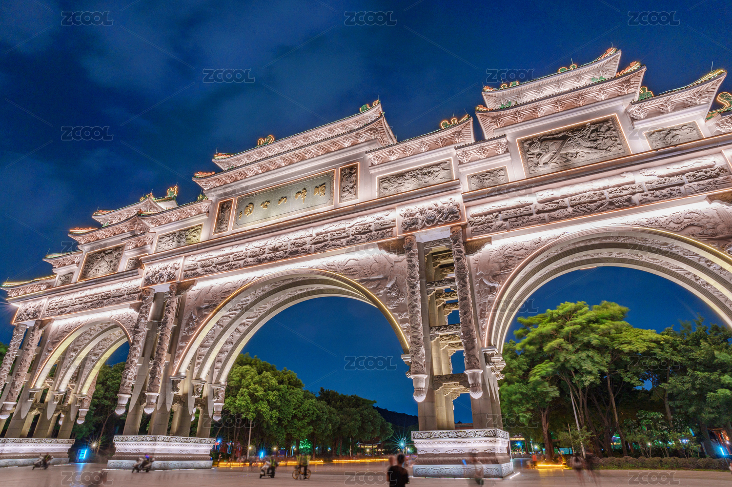 佛山顺峰山公园中华第一牌坊中式建筑夜景