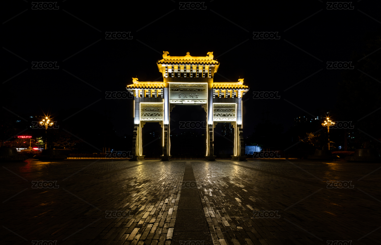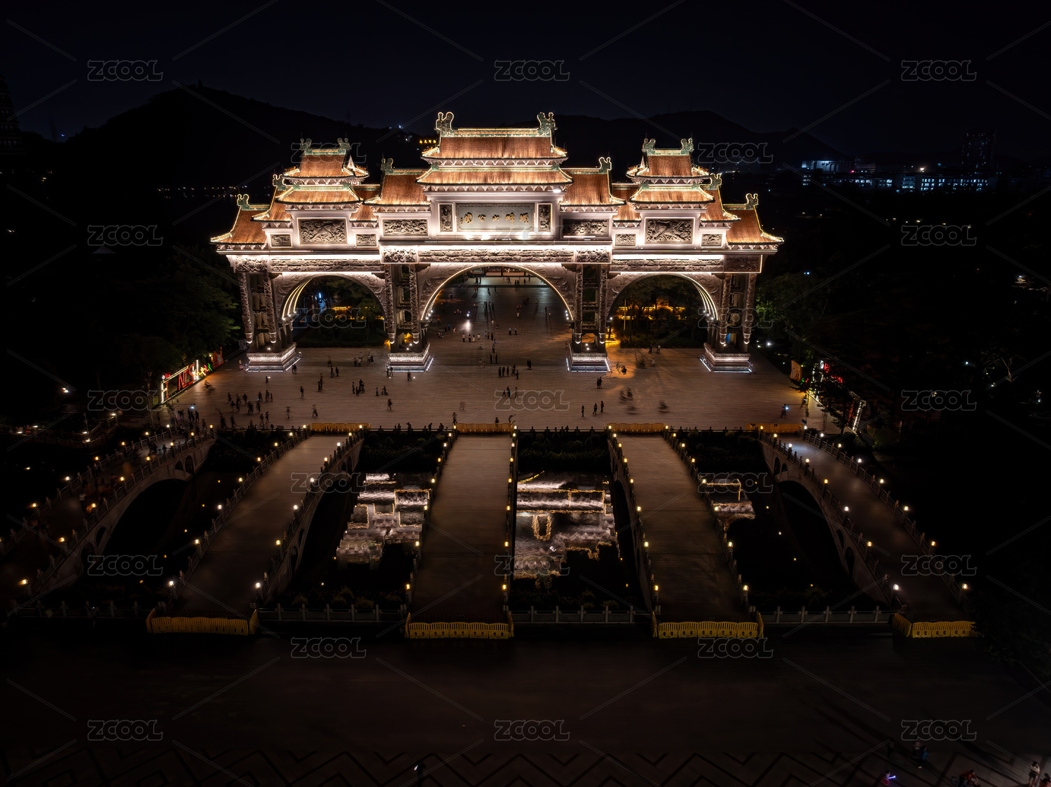 佛山顺峰山公园牌坊牌楼中式建筑夜景灯光