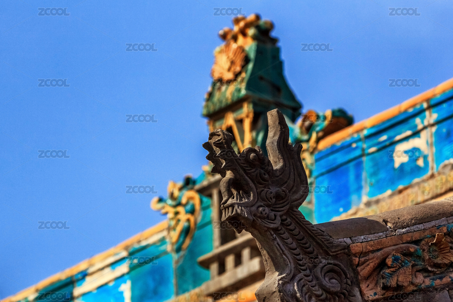 山西太原多福寺屋顶琉璃饰物