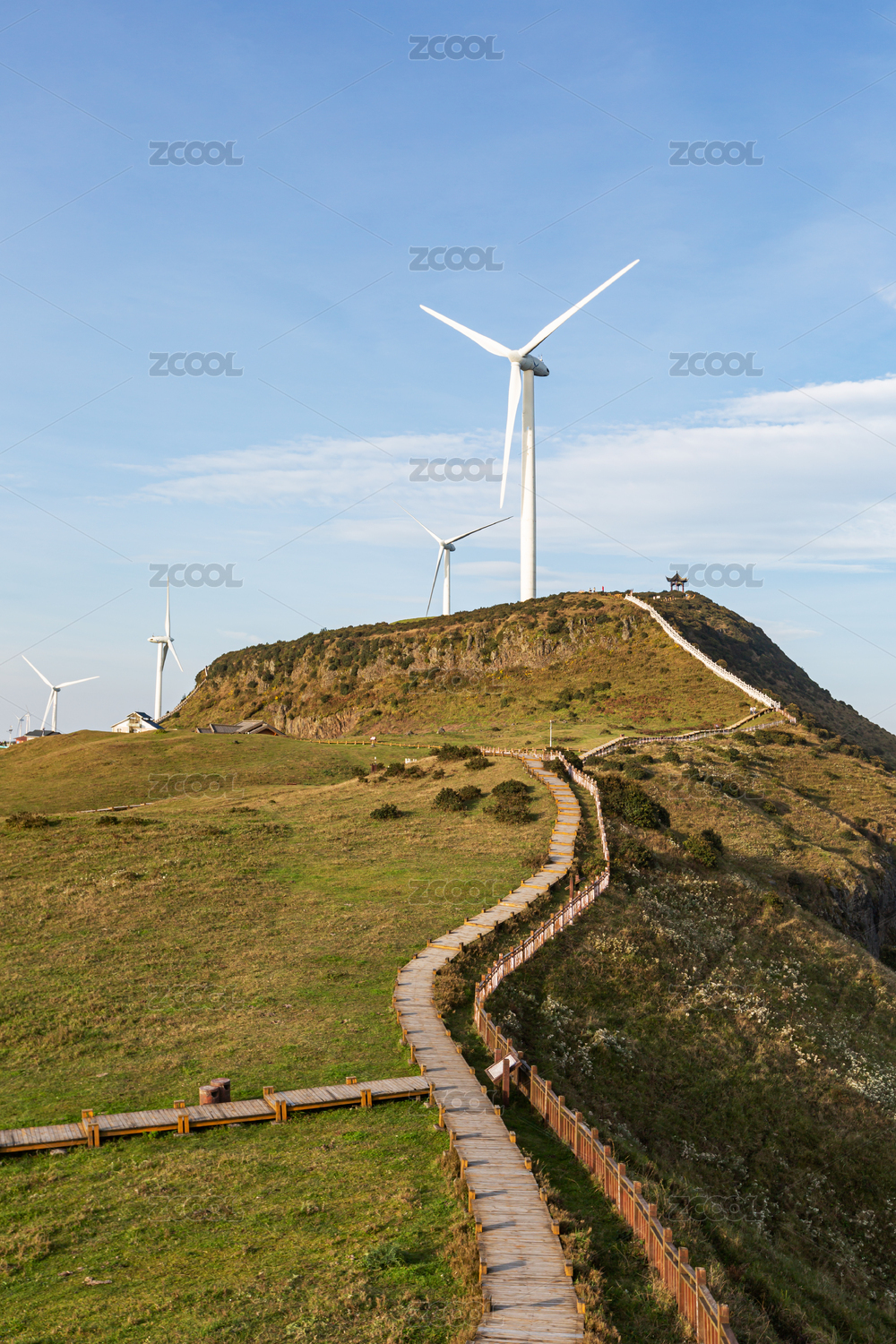 中国山东青岛风力发电的大风车