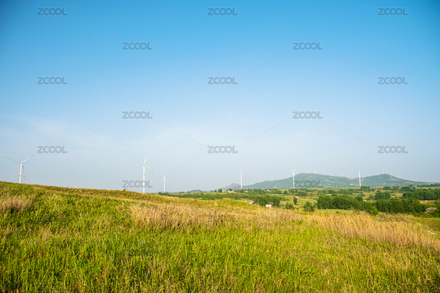 中国内蒙古草原草原上的风力发电机大风车