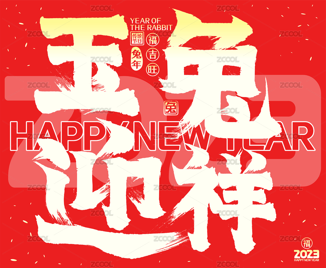 2023玉兔迎祥喜庆中国红兔年春节毛笔字