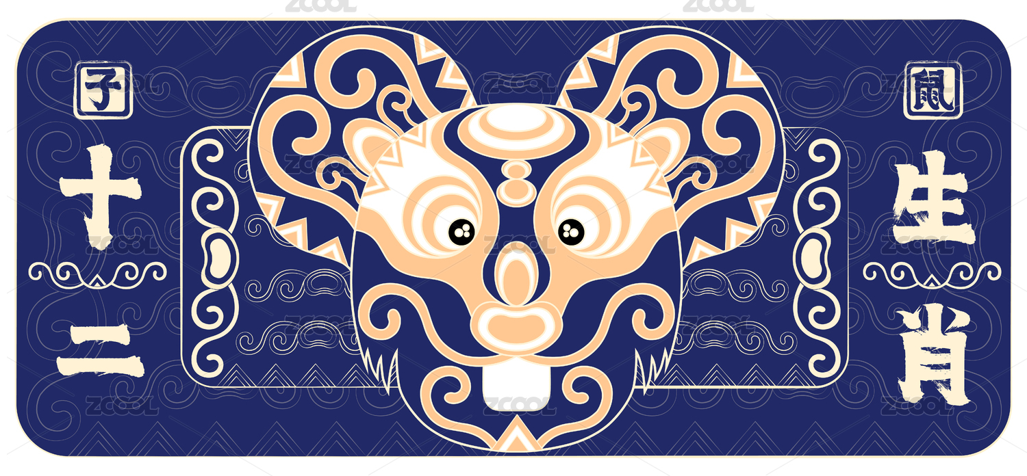 子鼠十二生肖国潮金色传统装饰纹样矢量插画