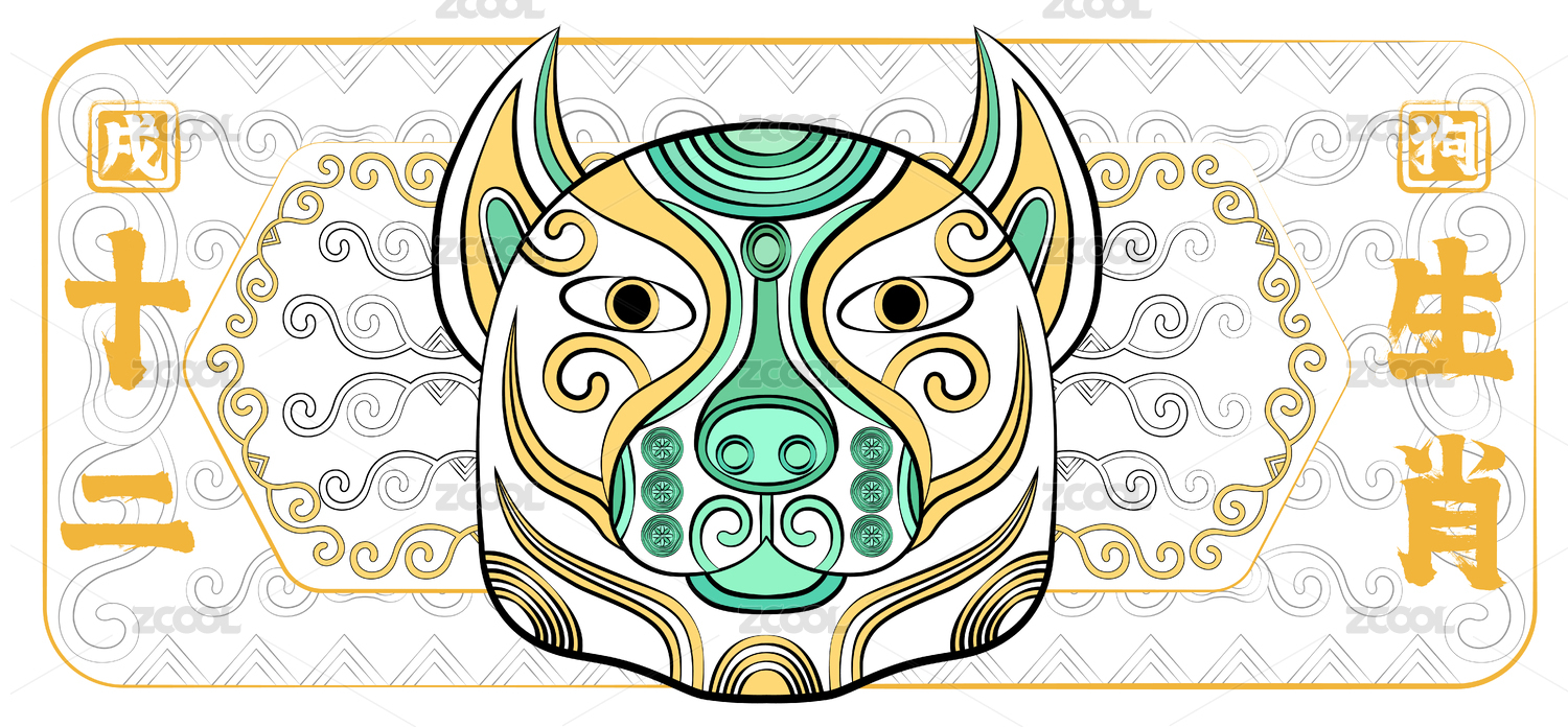 简约十二生肖戍狗国潮纹样印花图案矢量插画