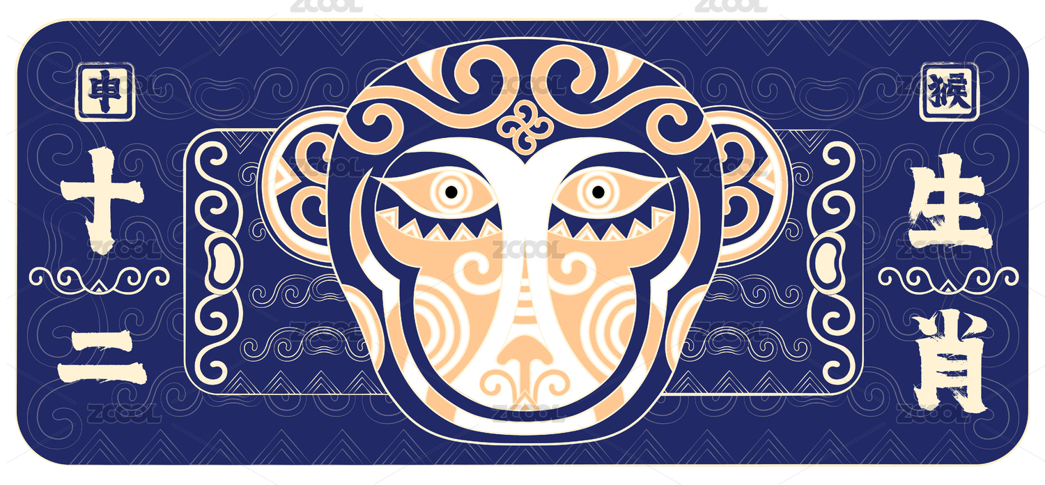 申猴十二生肖国潮金色传统装饰纹样矢量插画