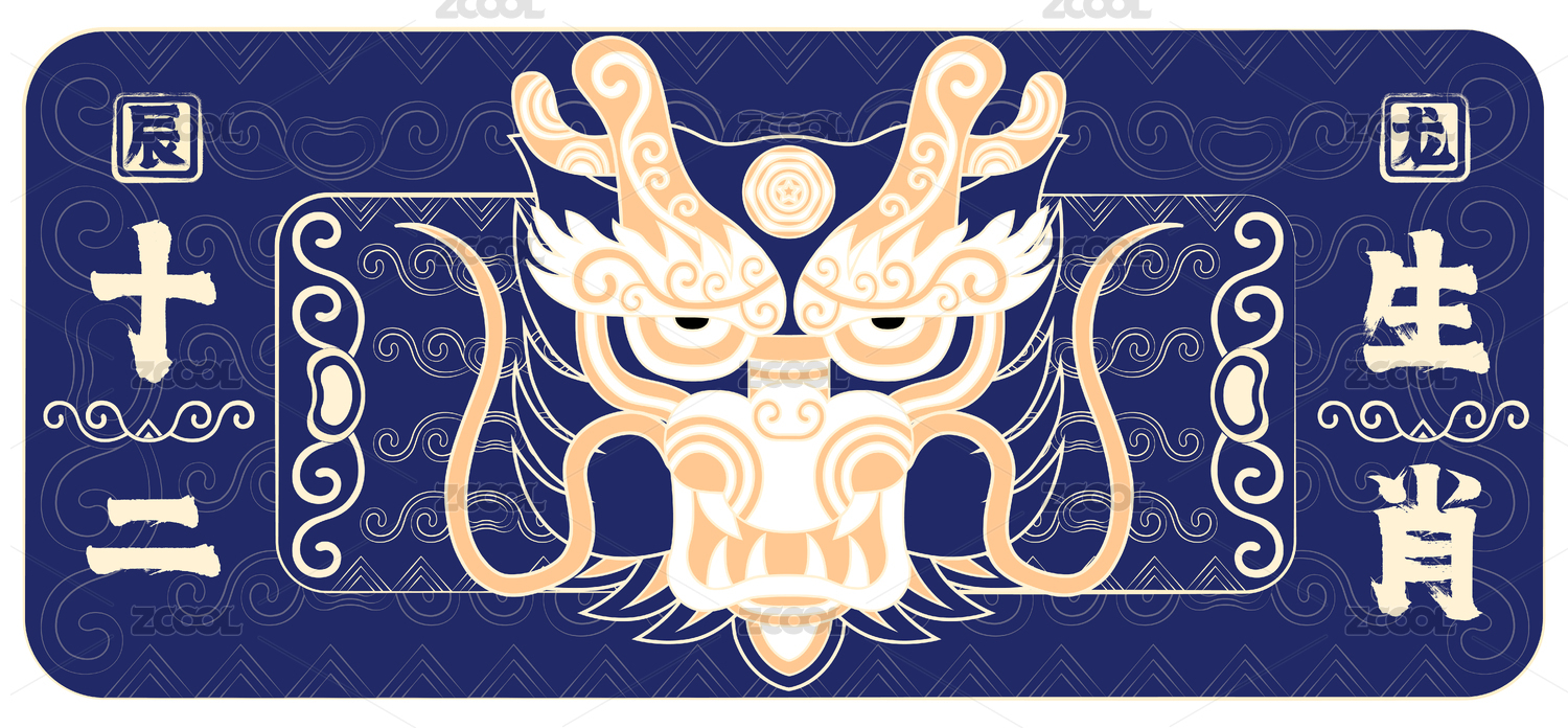 辰龙十二生肖国潮金色传统装饰纹样矢量插画
