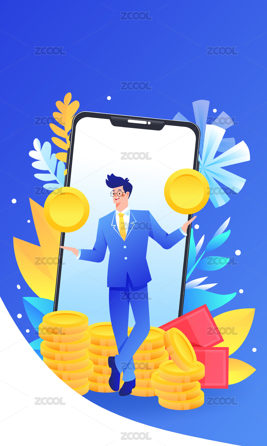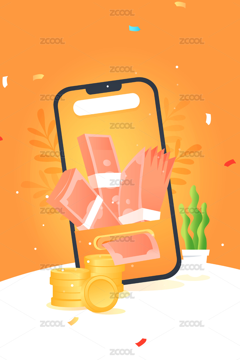 卡通手绘男人女人手机购物红包推广活动金融插画