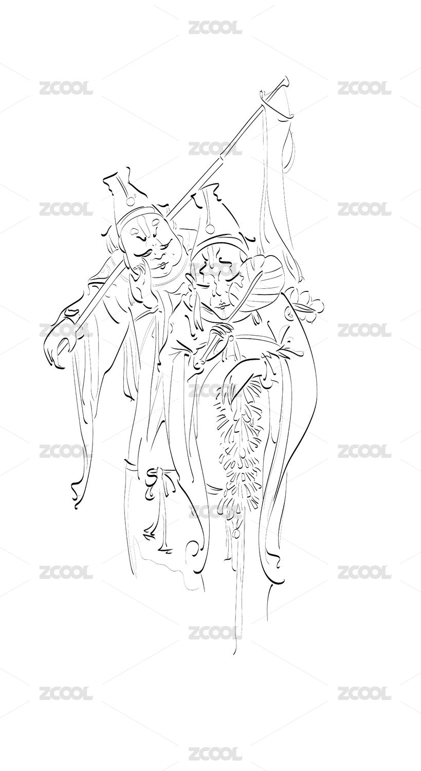 七夕节情人节情侣接吻浪漫矢量手绘线条线描插画