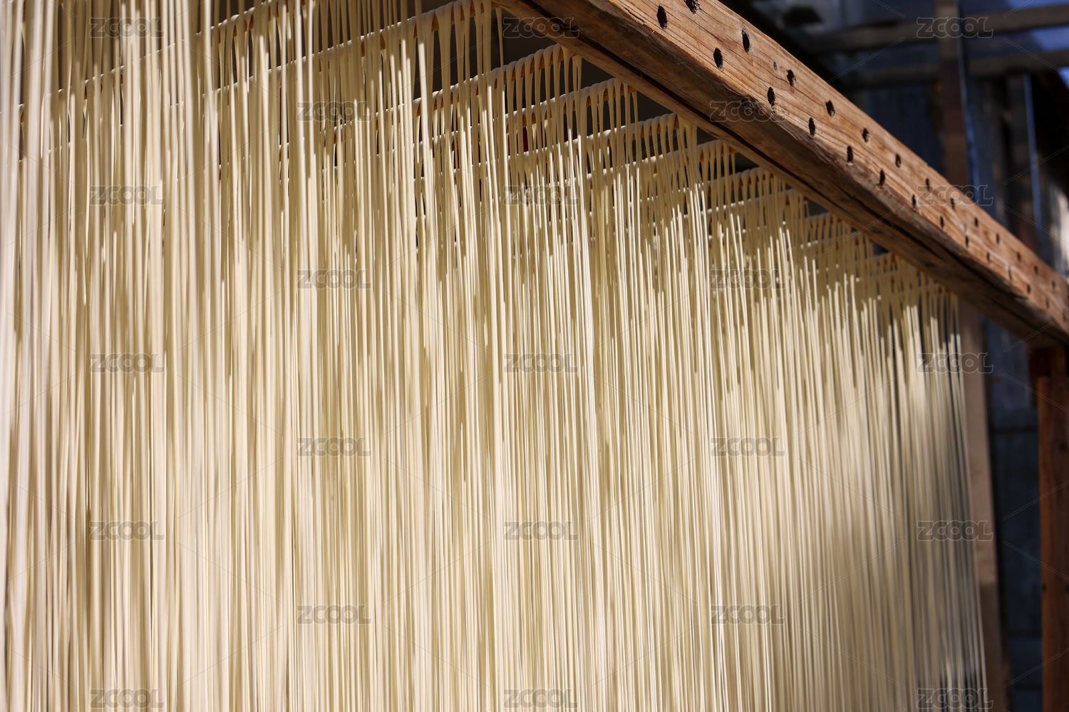 腐竹加工厂晾晒车间内竹杆上的半成品