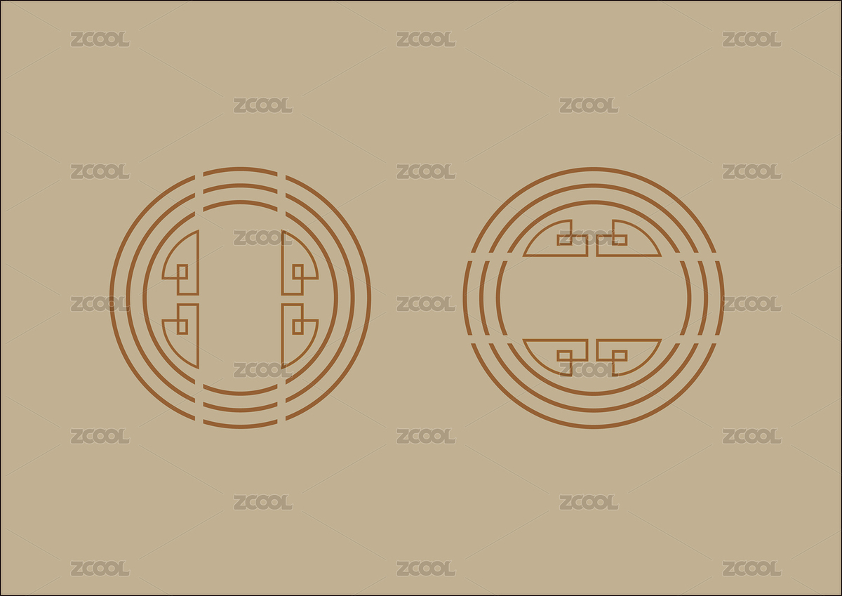 中式花纹窗格纹样圆形标识线段图形