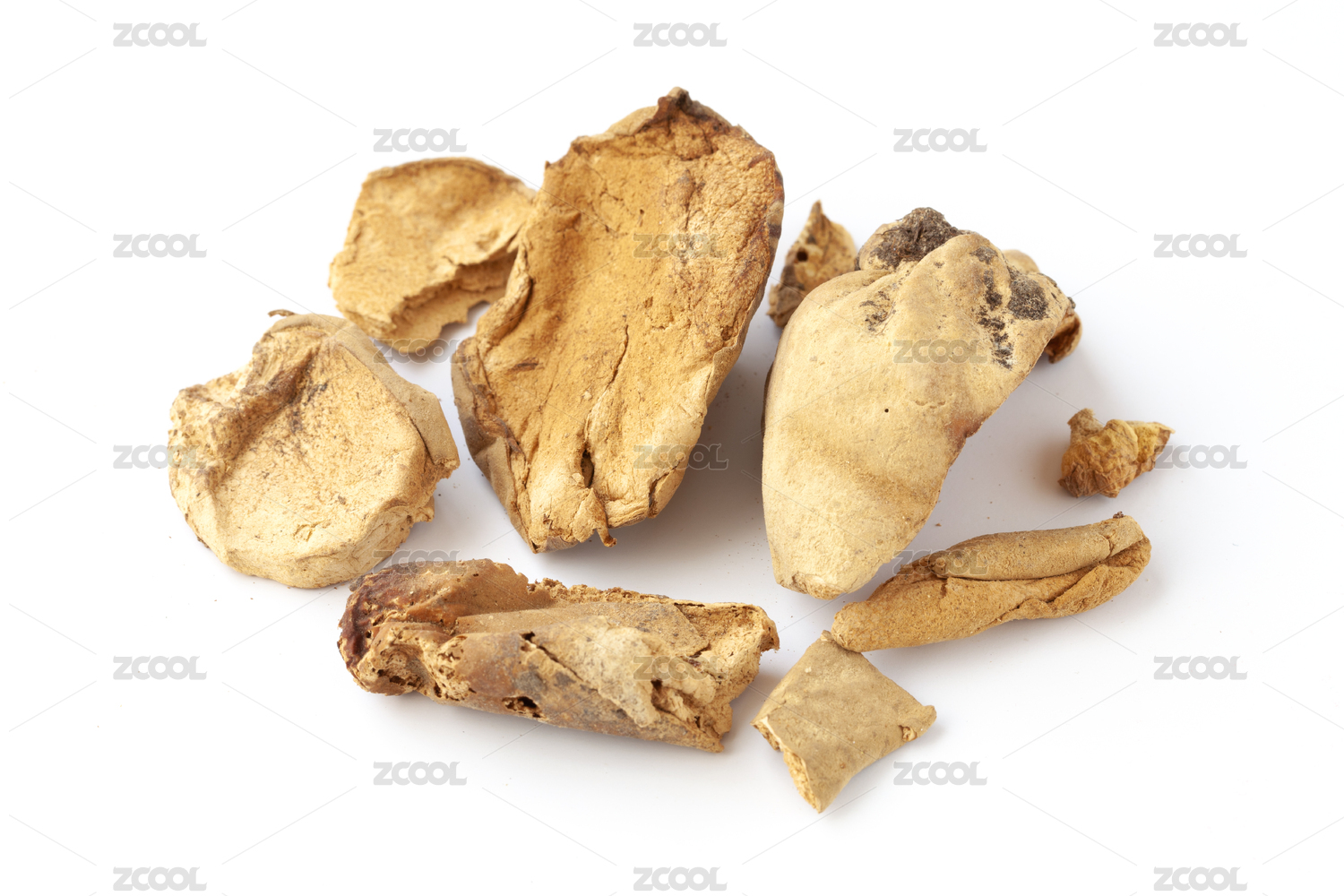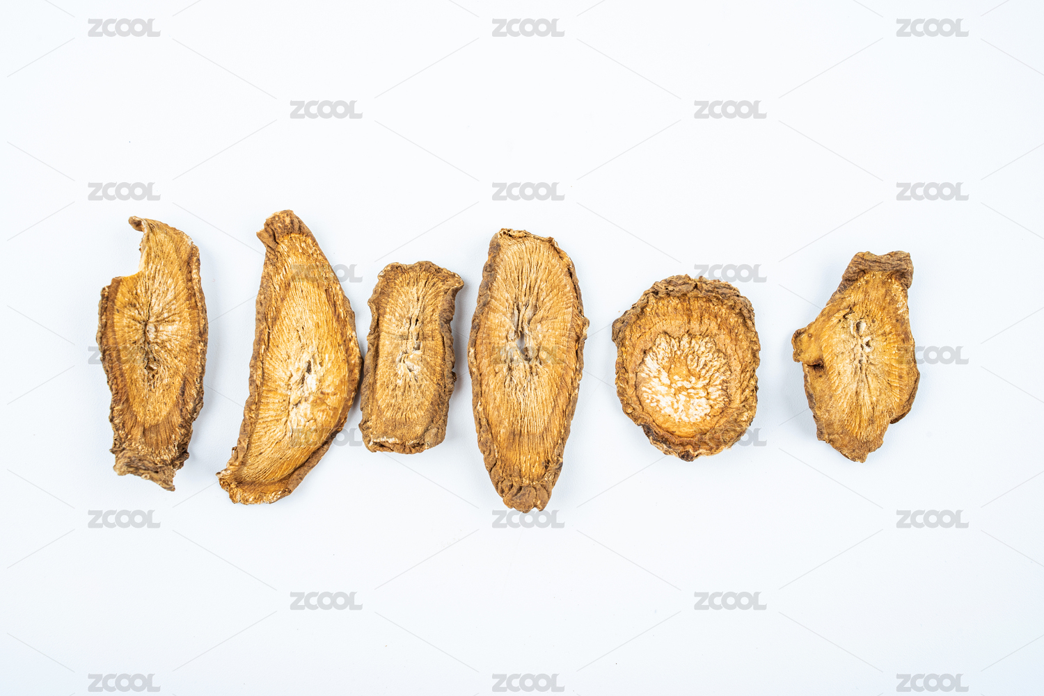 白背景上的中药材牛蒡根片