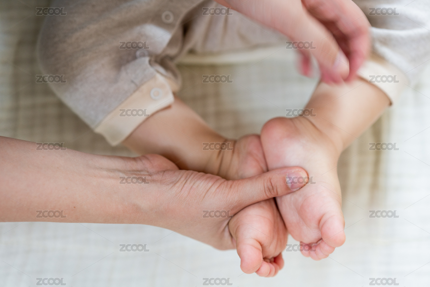 妈妈用手托住婴儿胖嘟嘟的小脚丫