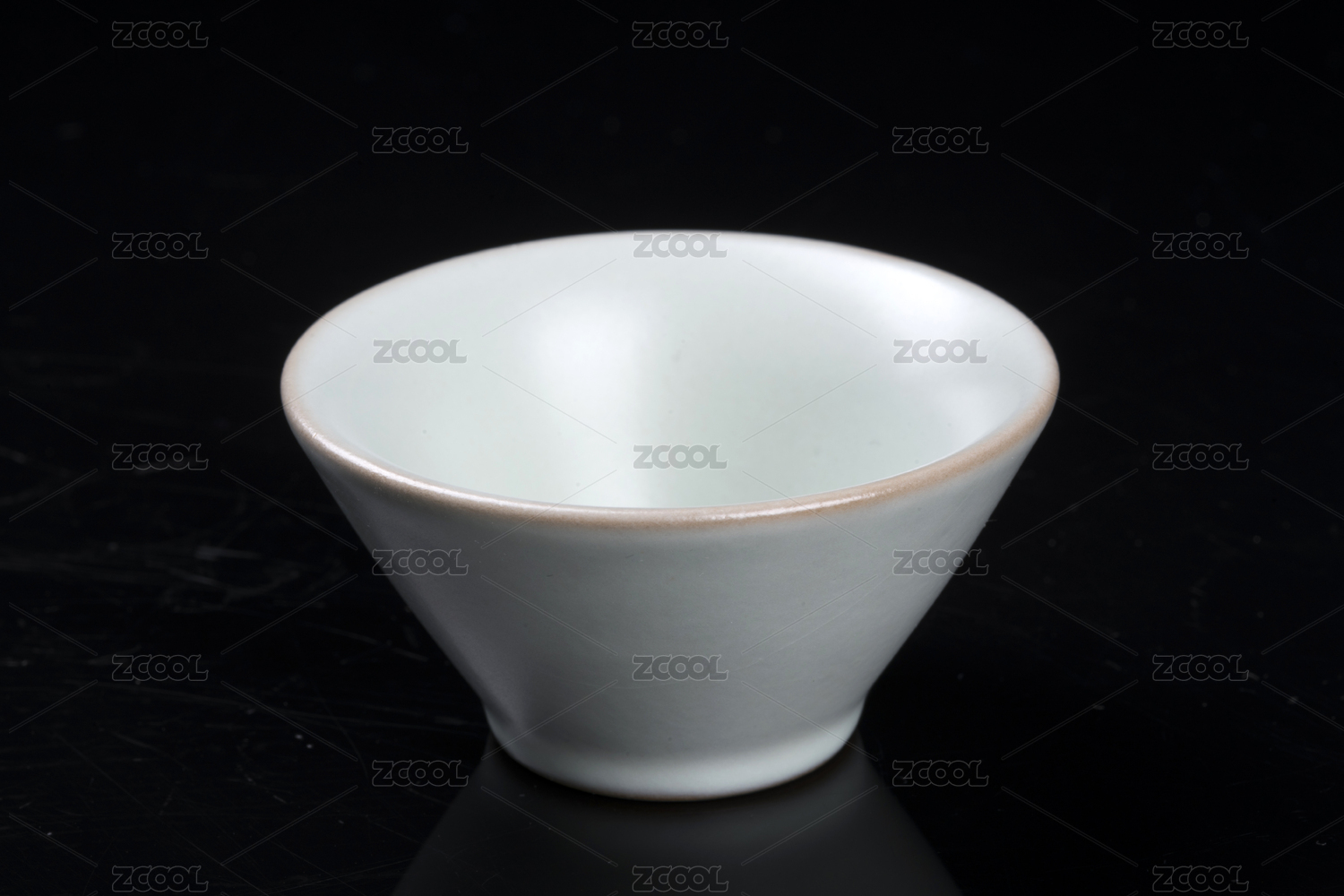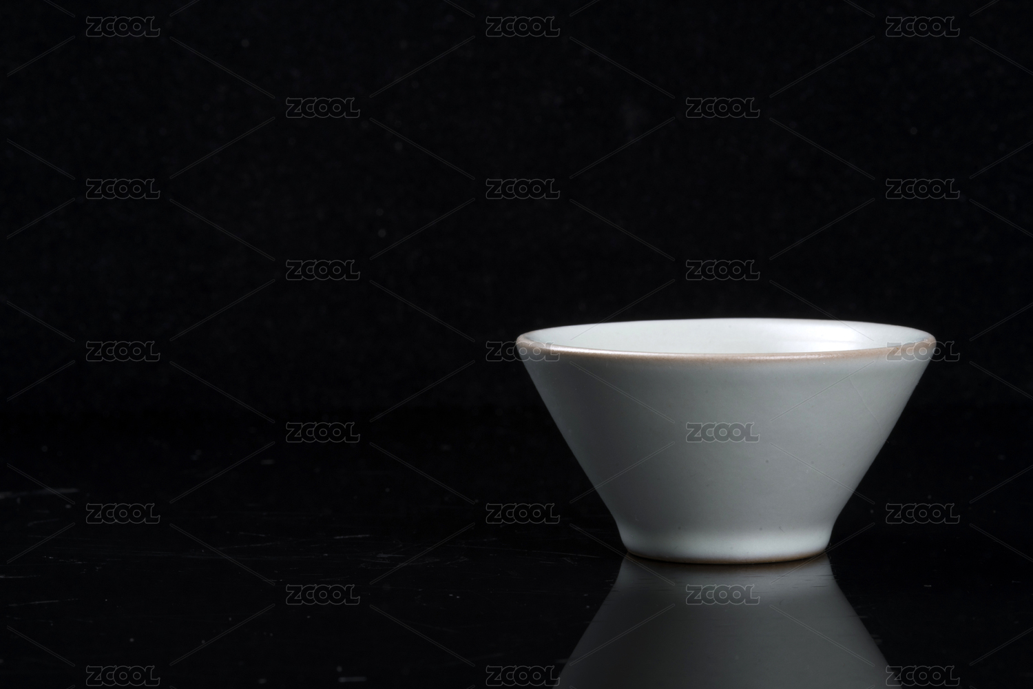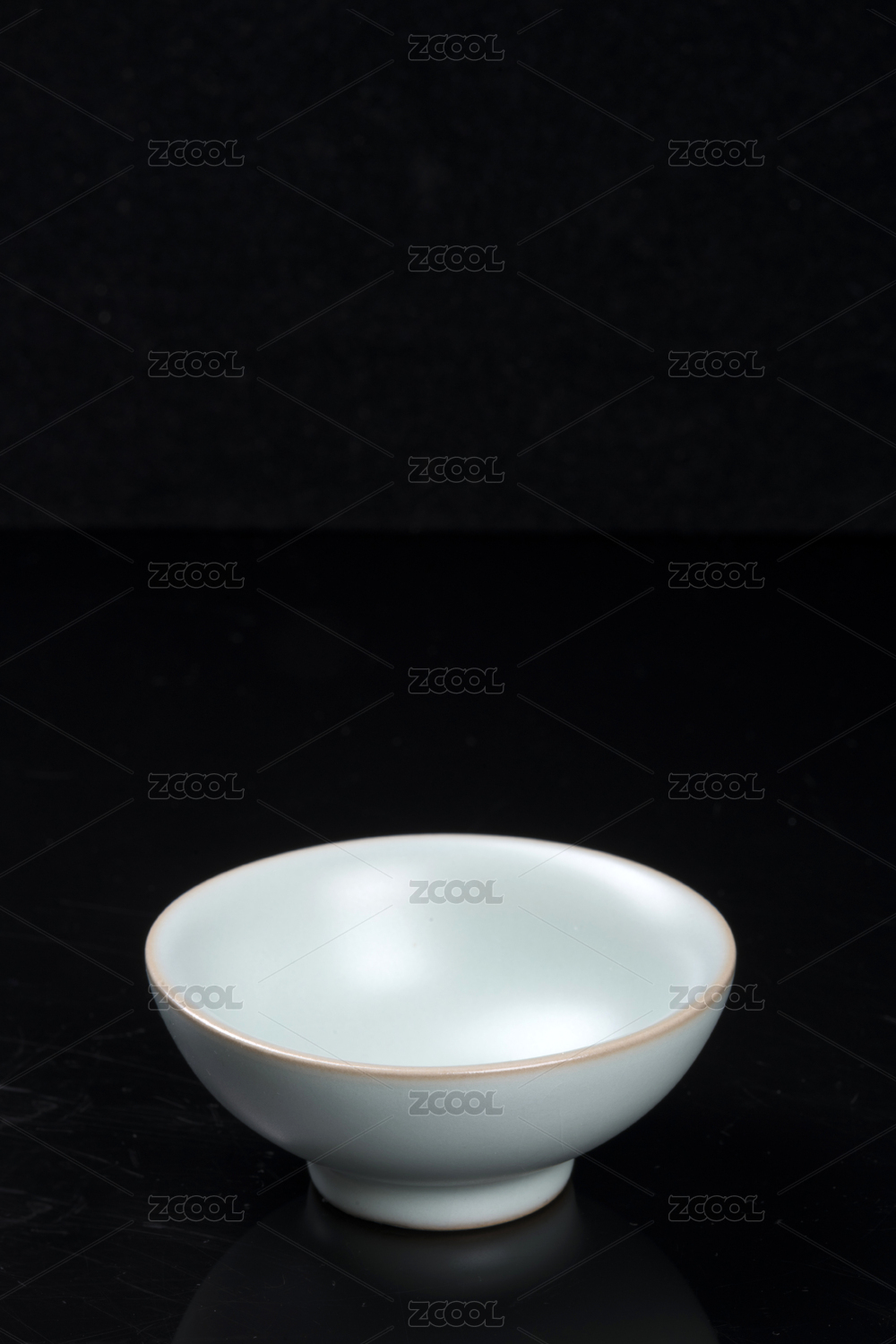 一只汝瓷茶杯茶盏摆放在木桌面上黑色背景