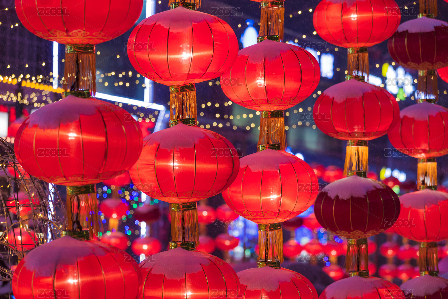 春节期间悬挂的红灯笼