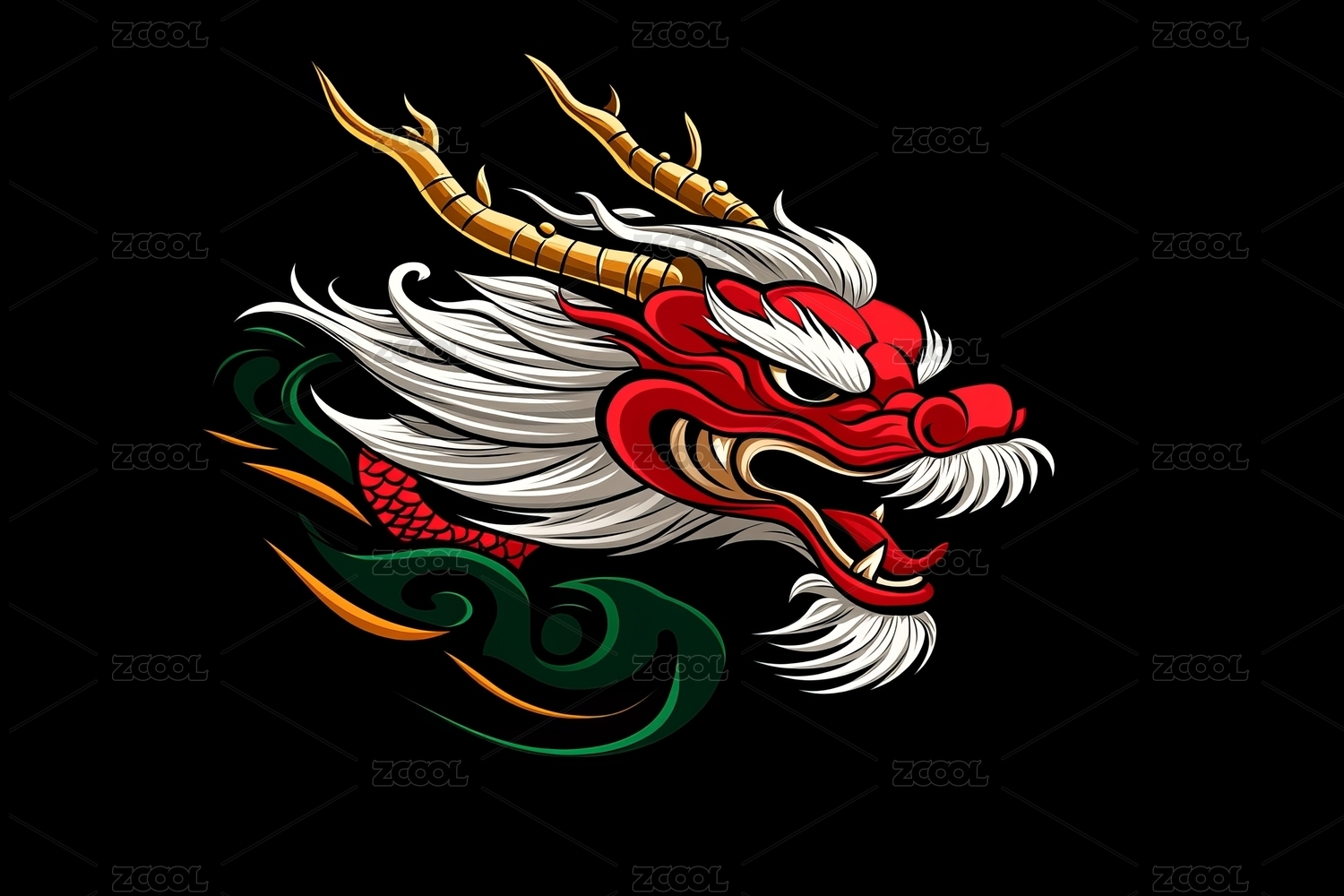 龙,标志,简洁,黑色,绿色,线条,图形,设计,抽象,艺术