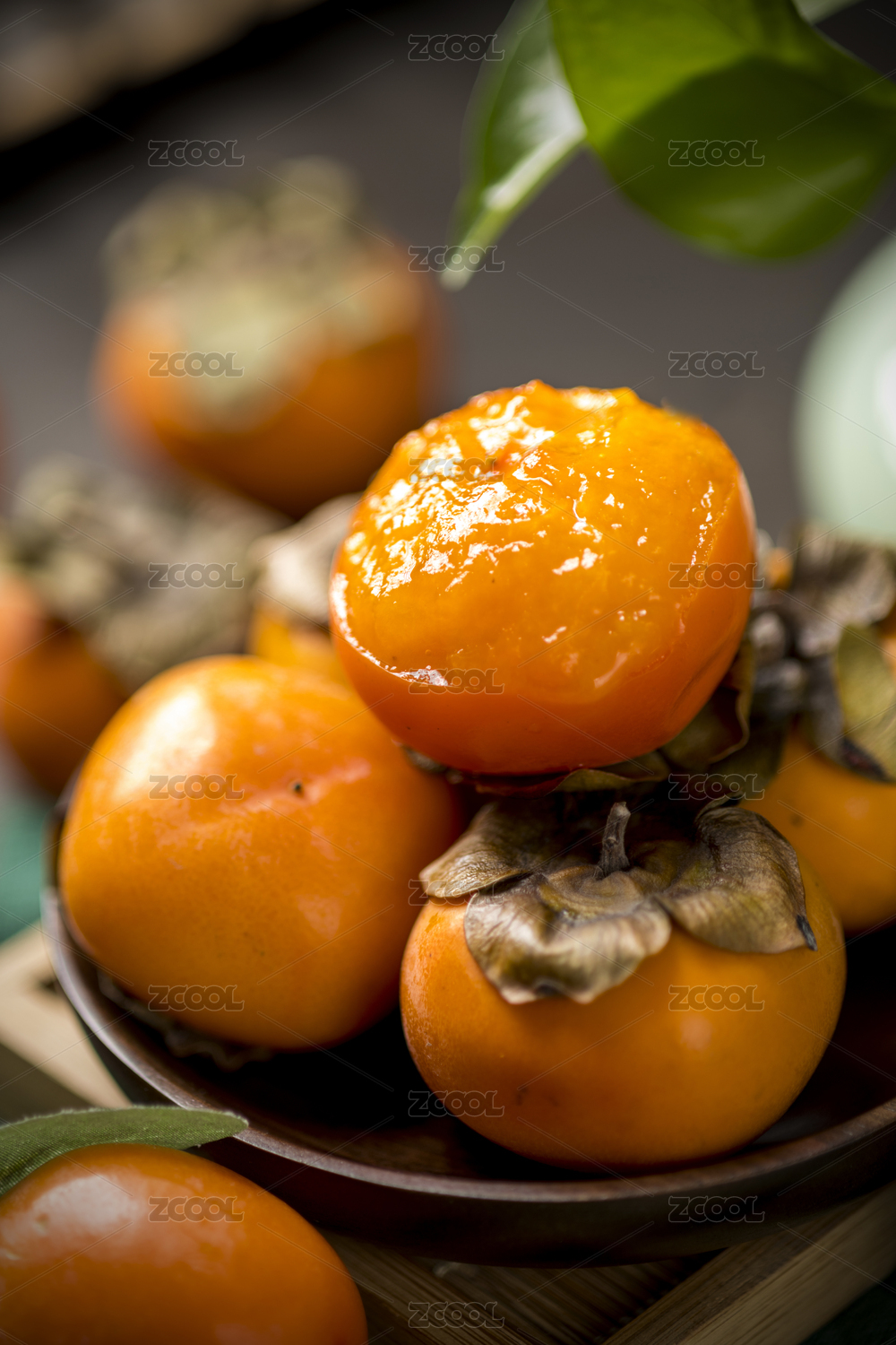 秋季新鲜采摘摆盘的时令水果红柿子静物美食
