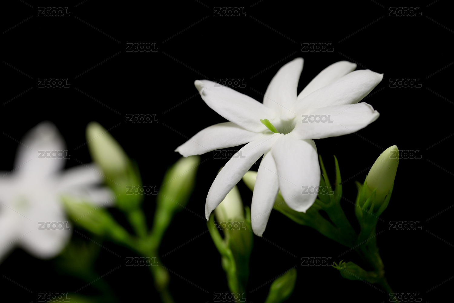 纯净白色花朵黑色背景