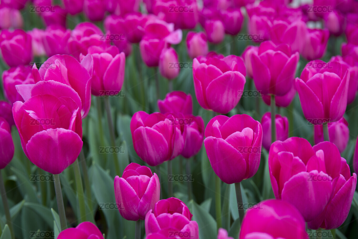 地上大片种植紫色郁金香,大光圈背景虚化拍摄