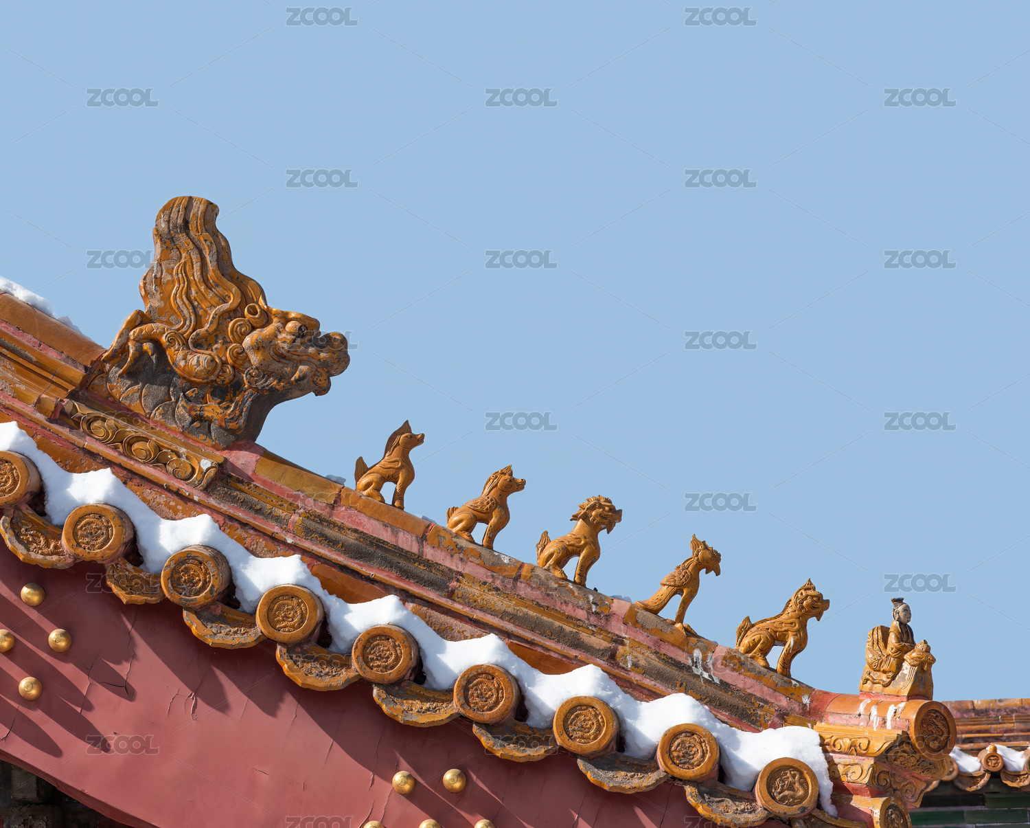 天空背景下的故宫琉璃脊兽