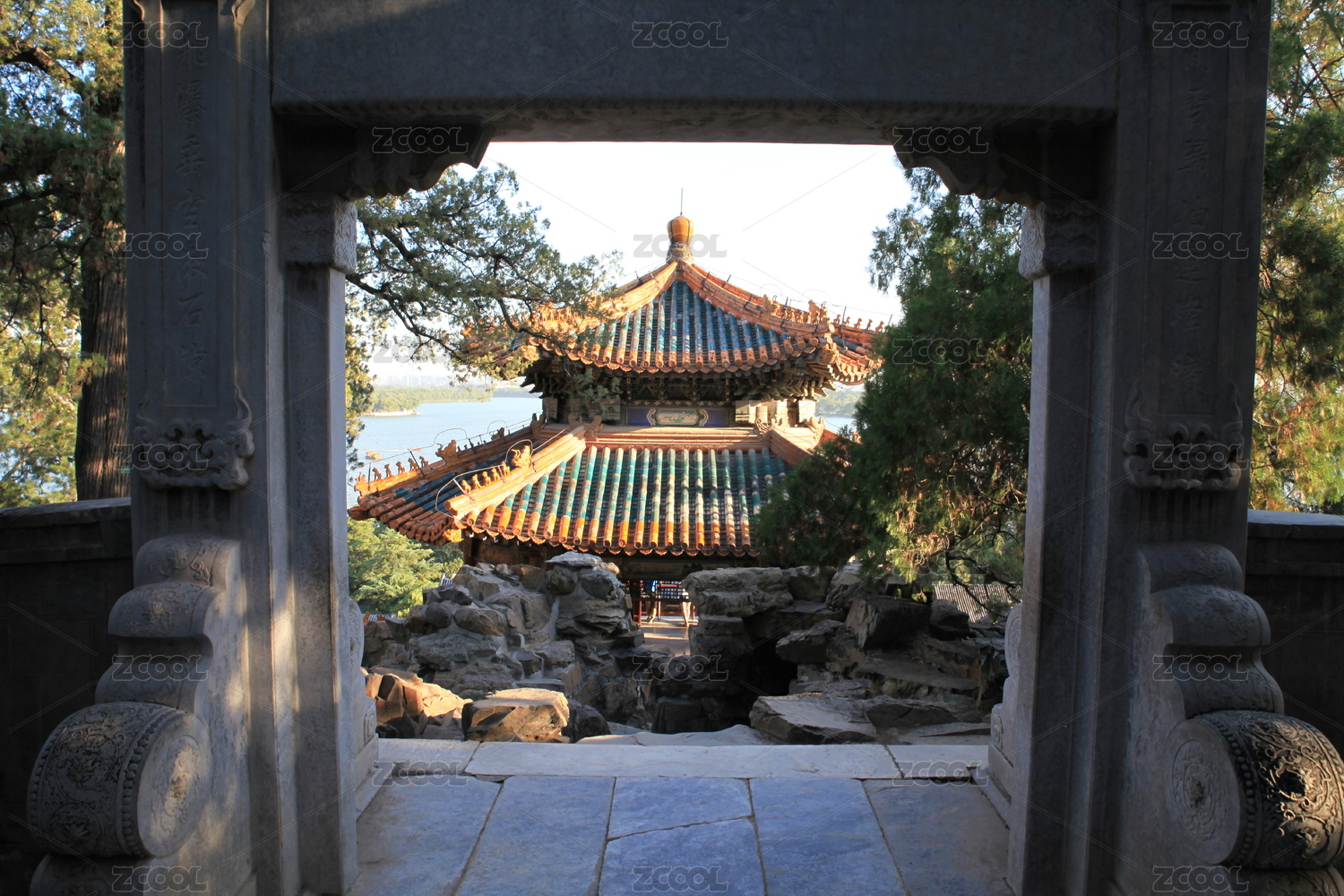 中国北京颐和园排云殿古建筑与昆明湖风光
