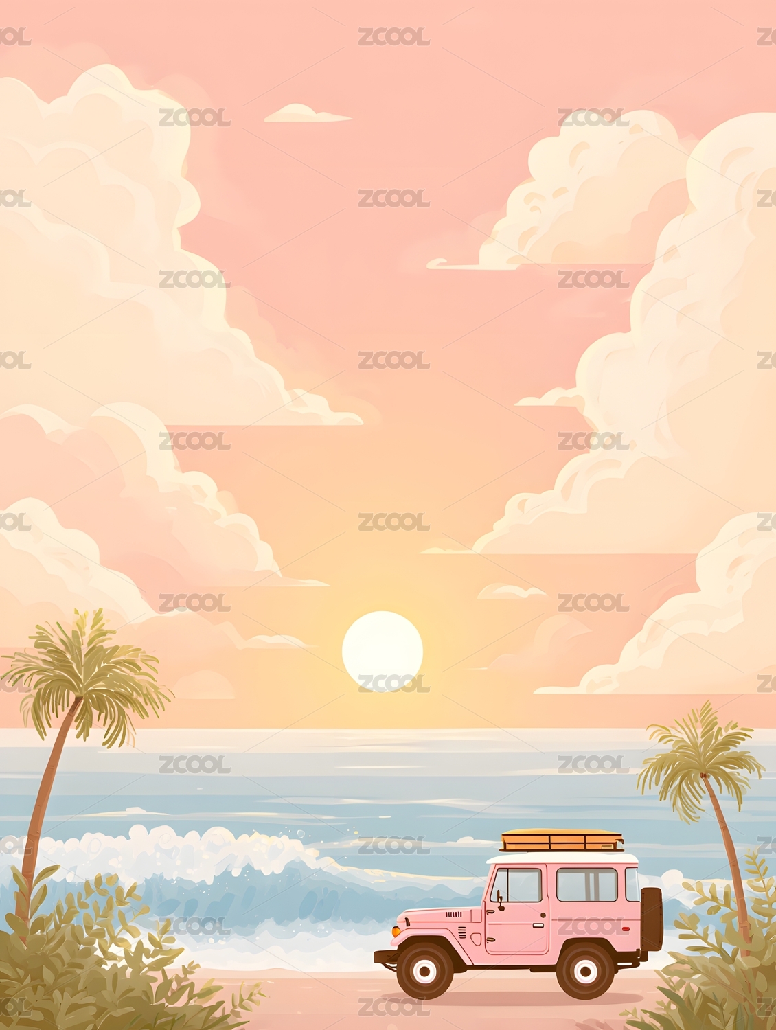 夏天海滩自驾游旅游度假休闲假期3D插画