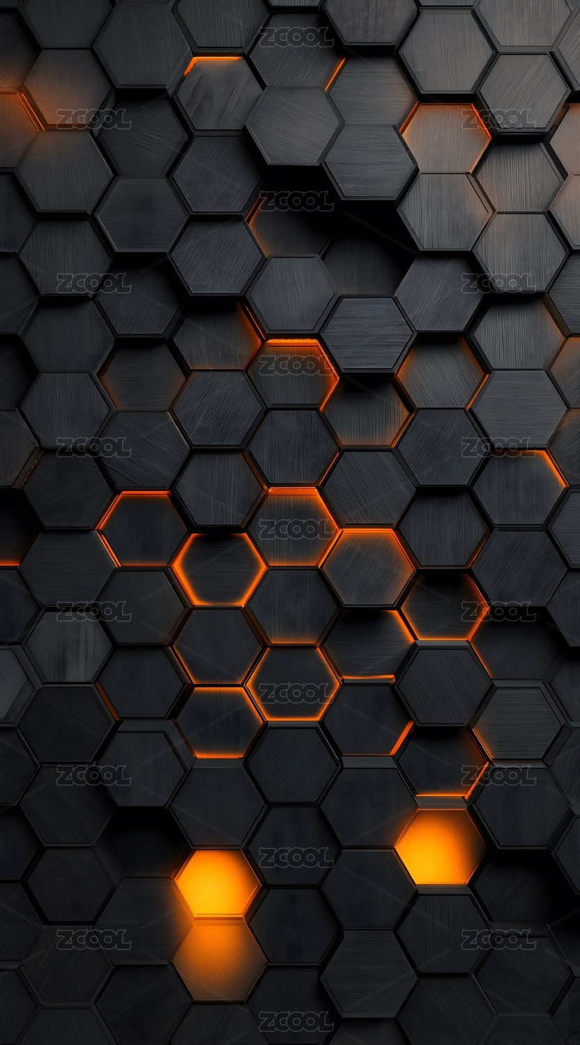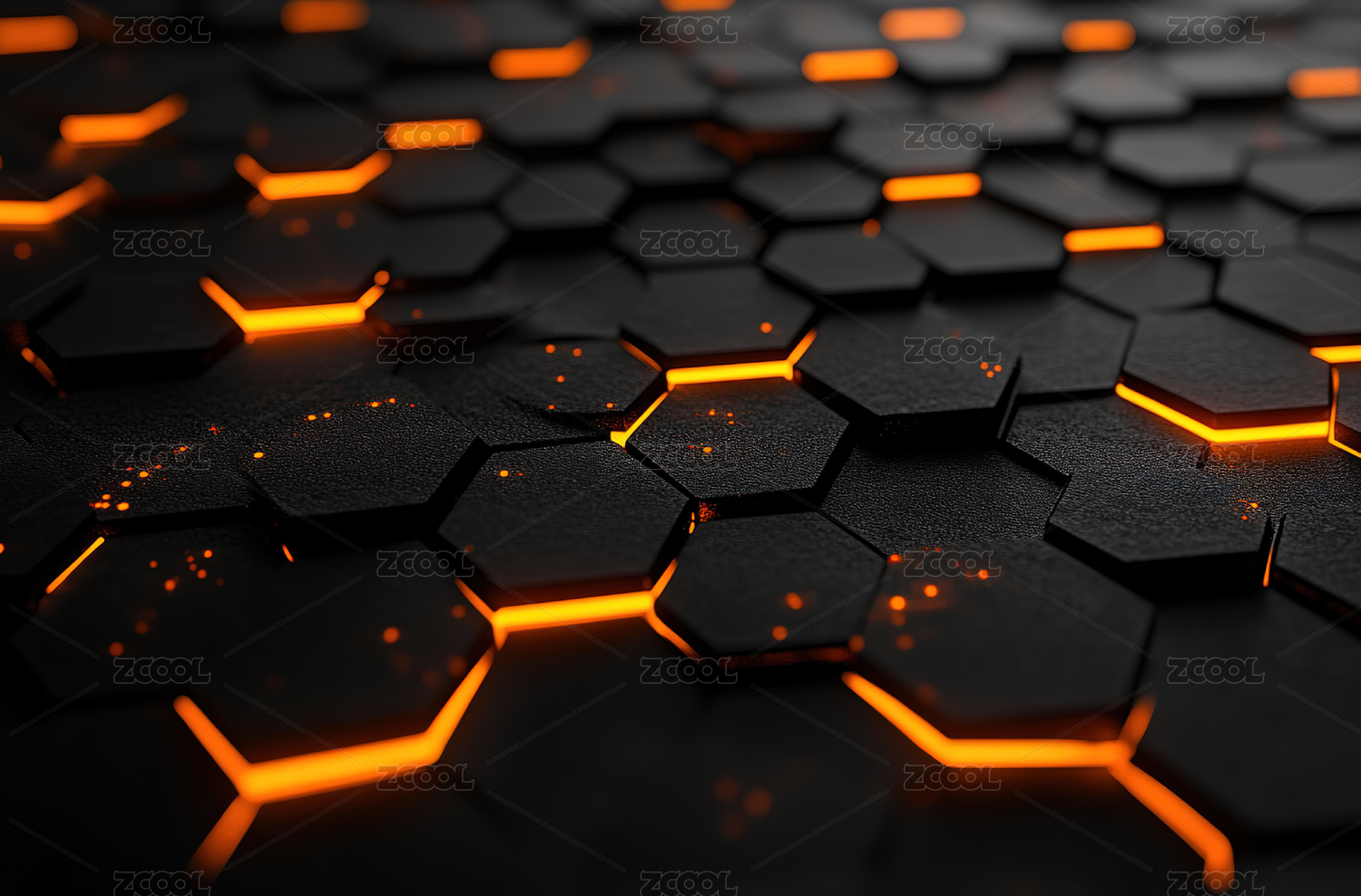 科幻科技蜂窝状六边形网状结构3D插画背景