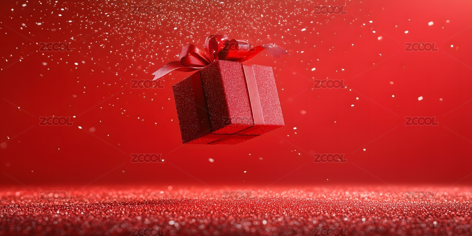 红色礼盒与亮片闪烁的背景