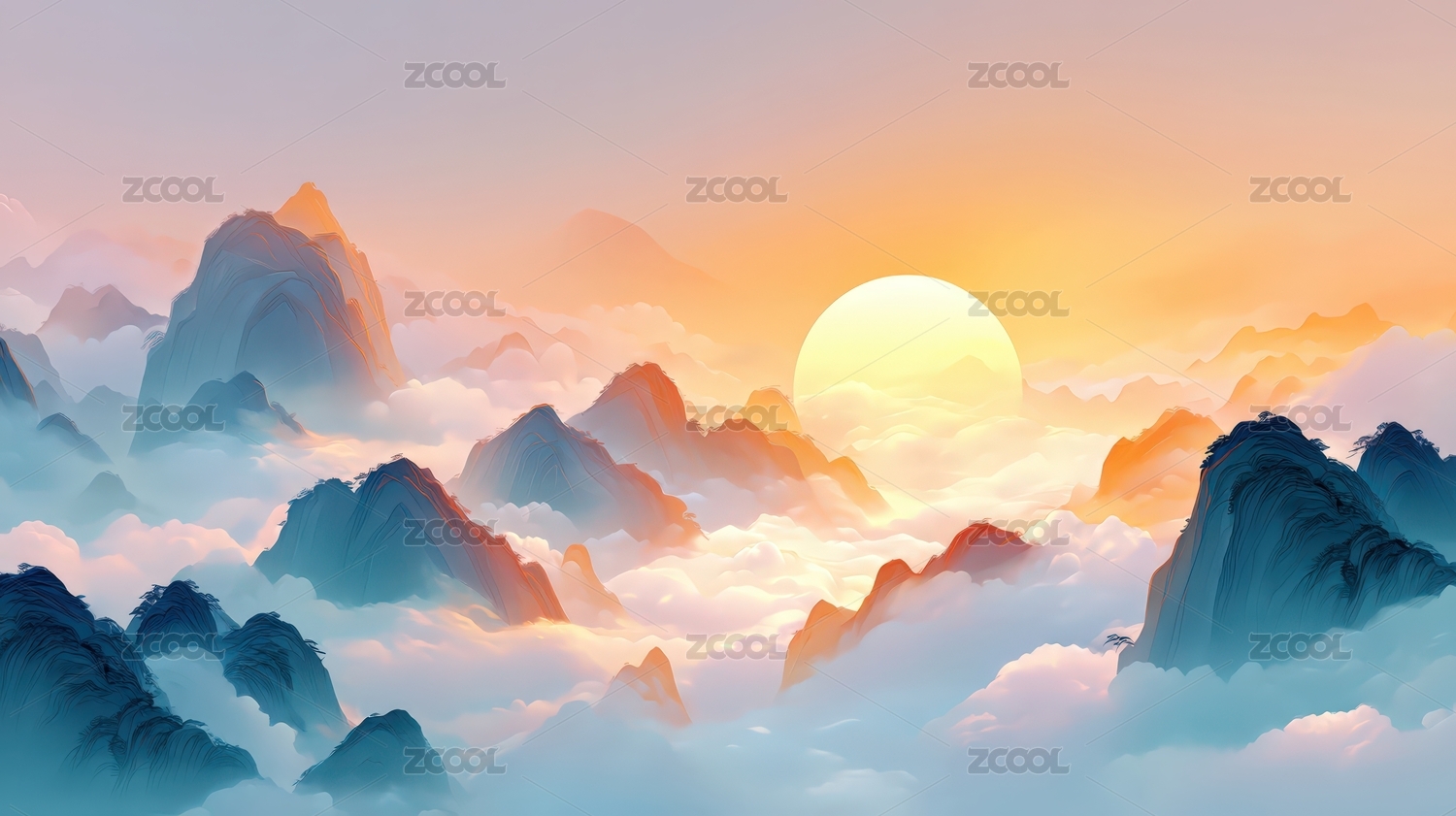 日出云海间群山景色