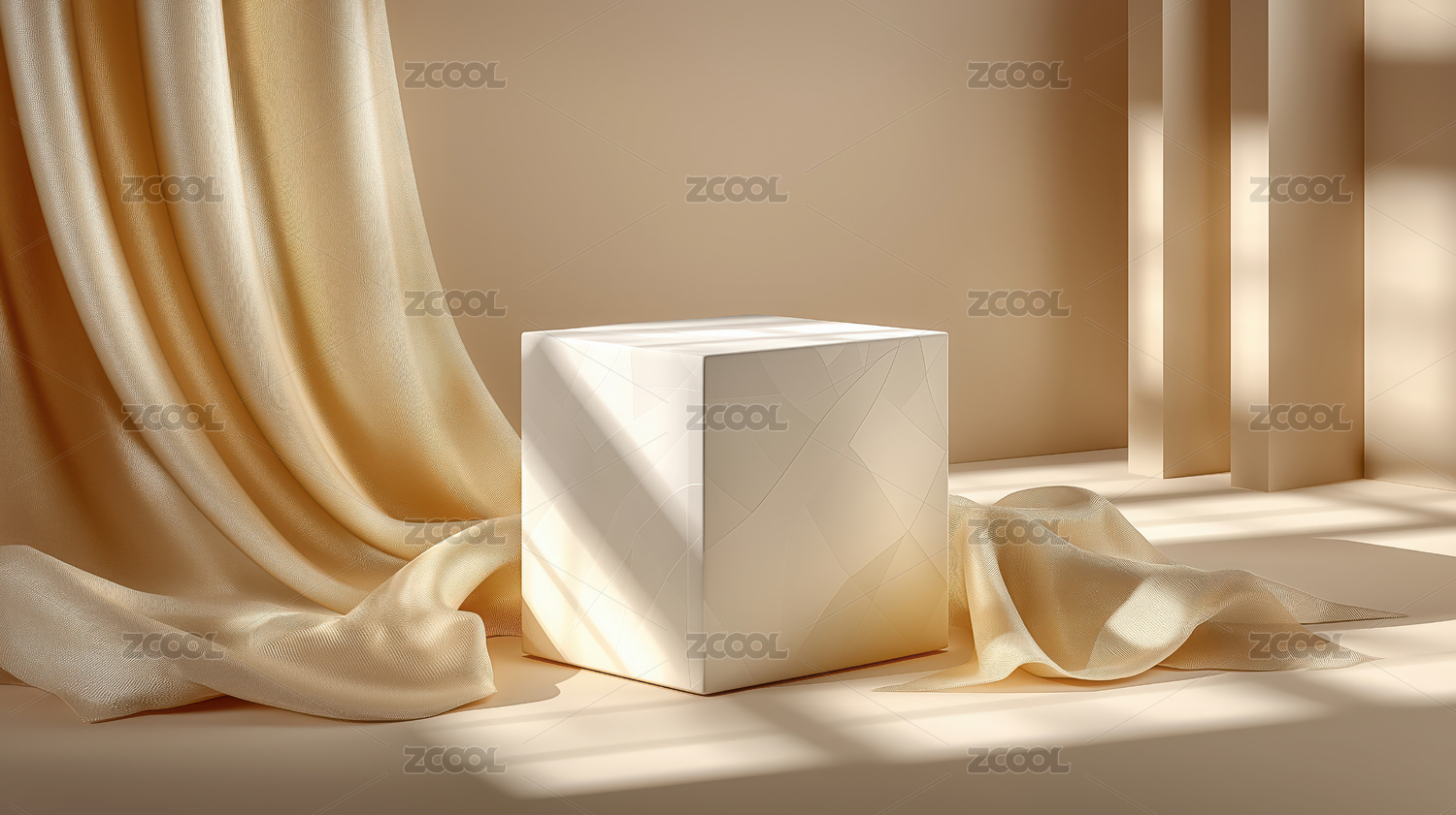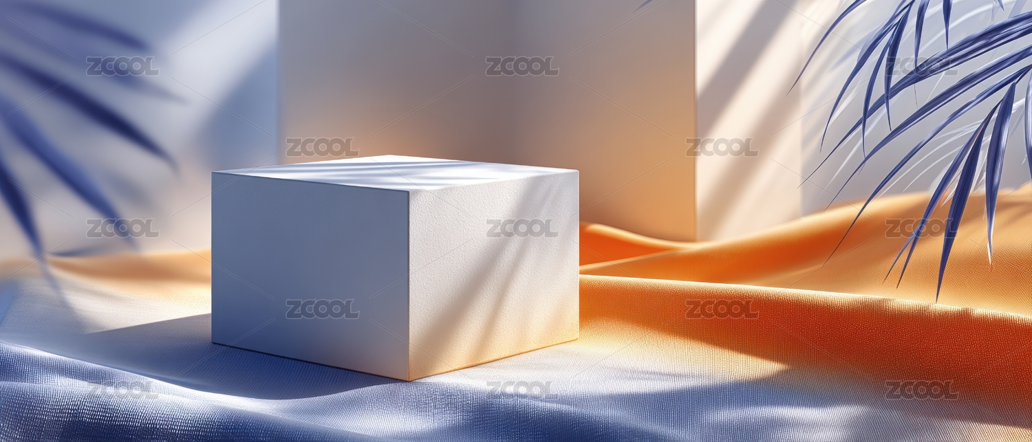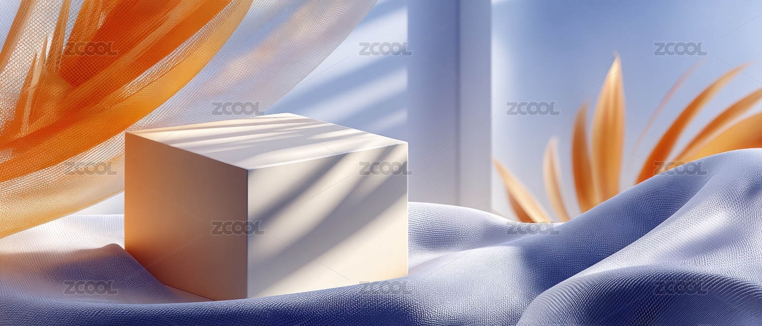 轻柔布料上的白色立方体