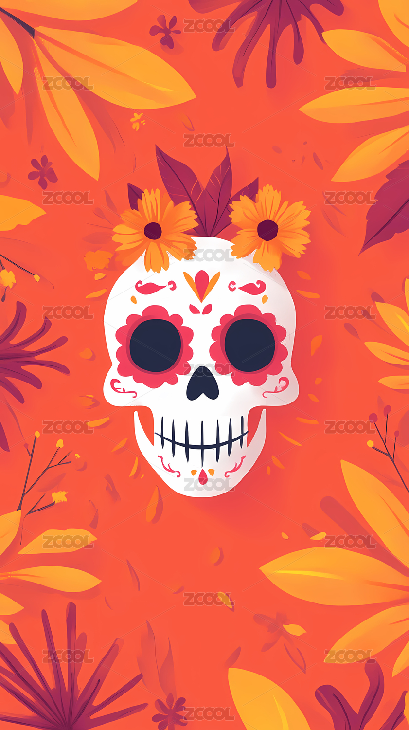 哥特风,骷髅,插画,白骨,骨架,骷髅头,创意,彩色,抽象,简约