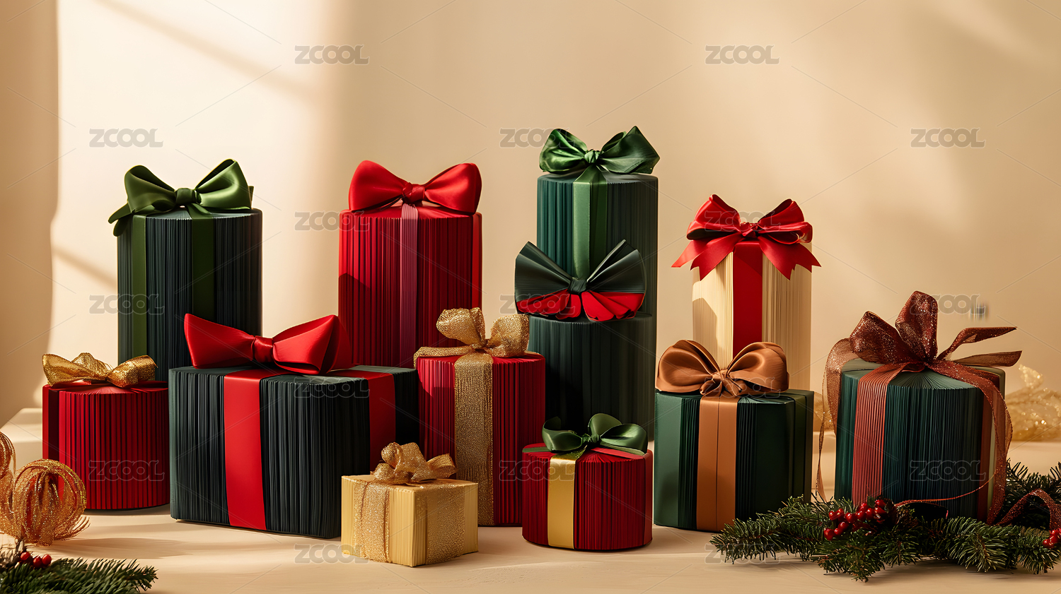 红色礼盒堆叠节日气氛浓郁