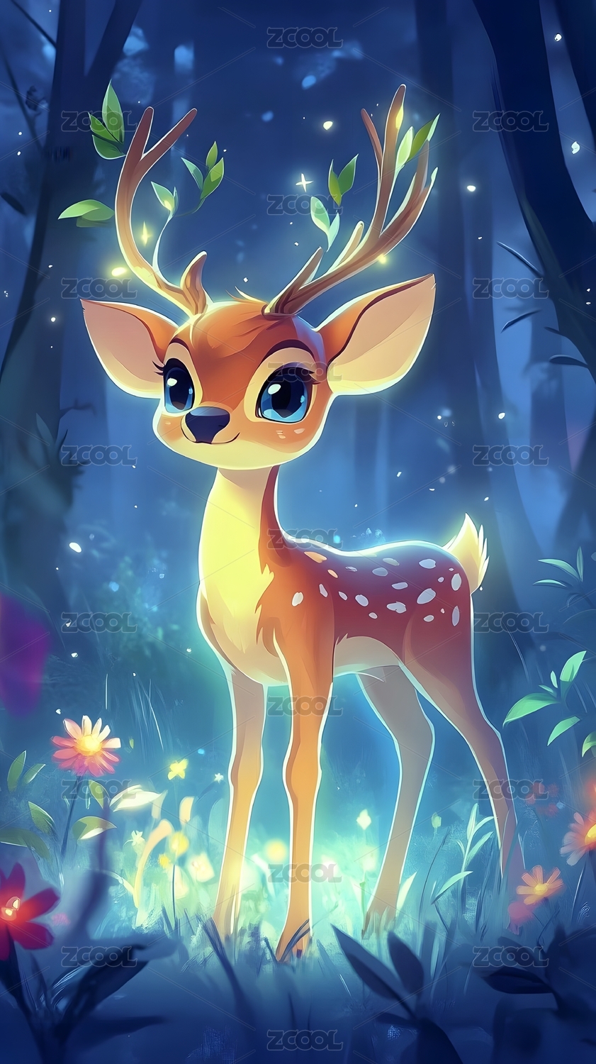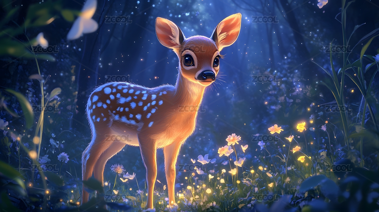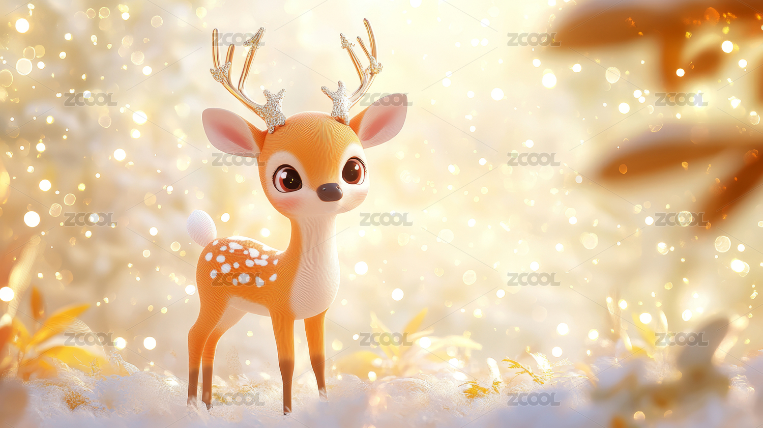 梅花鹿可爱唯美野生动物3D卡通插画壁纸