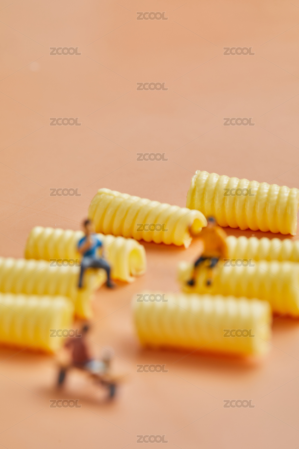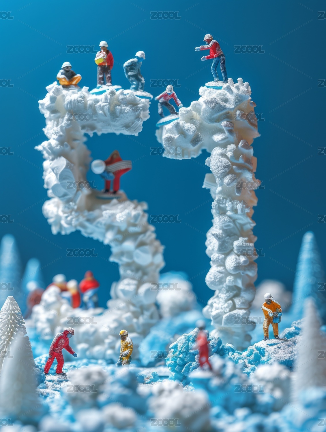 迷你微缩世界一群小人偶在雪糕世界滑雪