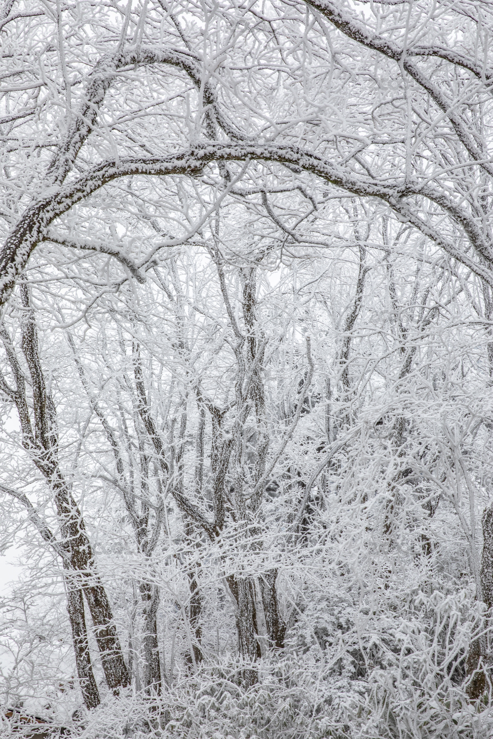 积雪覆盖的森林与树枝