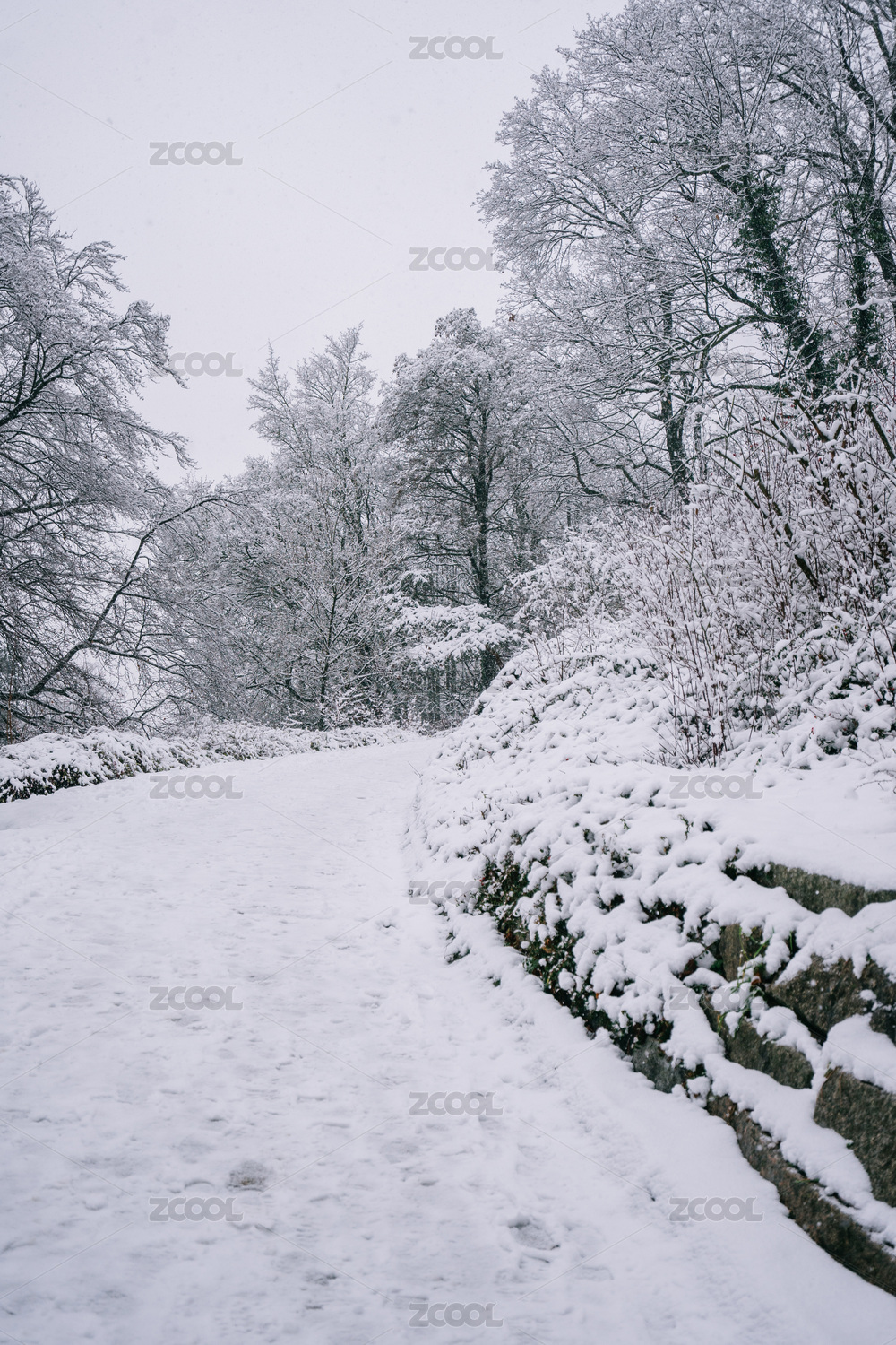冬季大雪后森林的林间小路