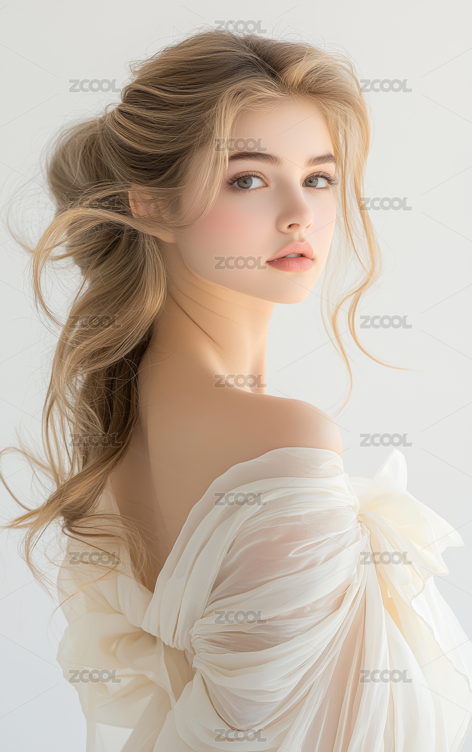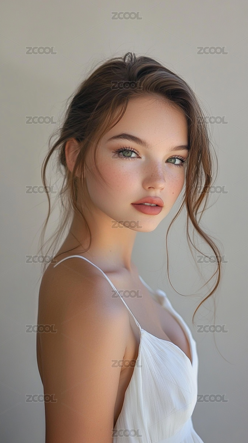 浅色背景欧美女性人物肖像