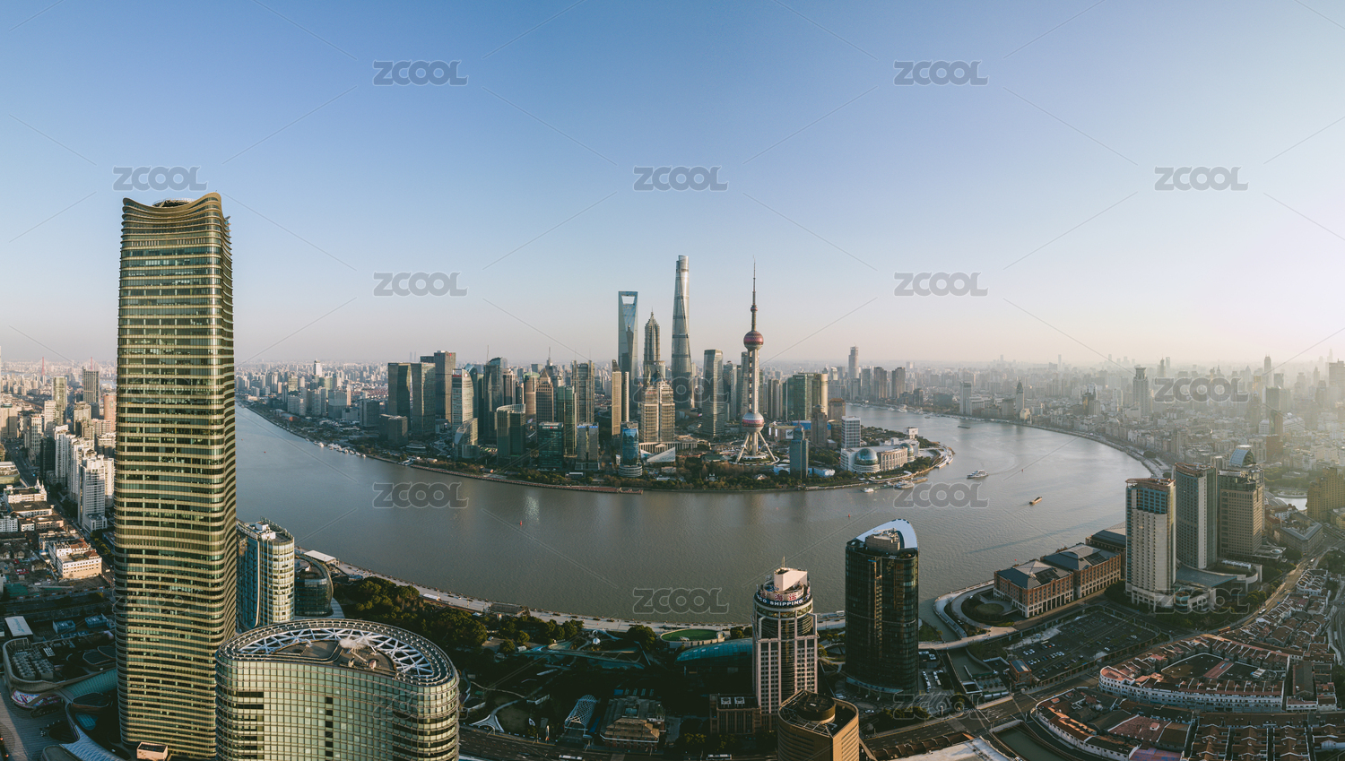 航拍上海地标建筑陆家嘴城市天际线全景风光