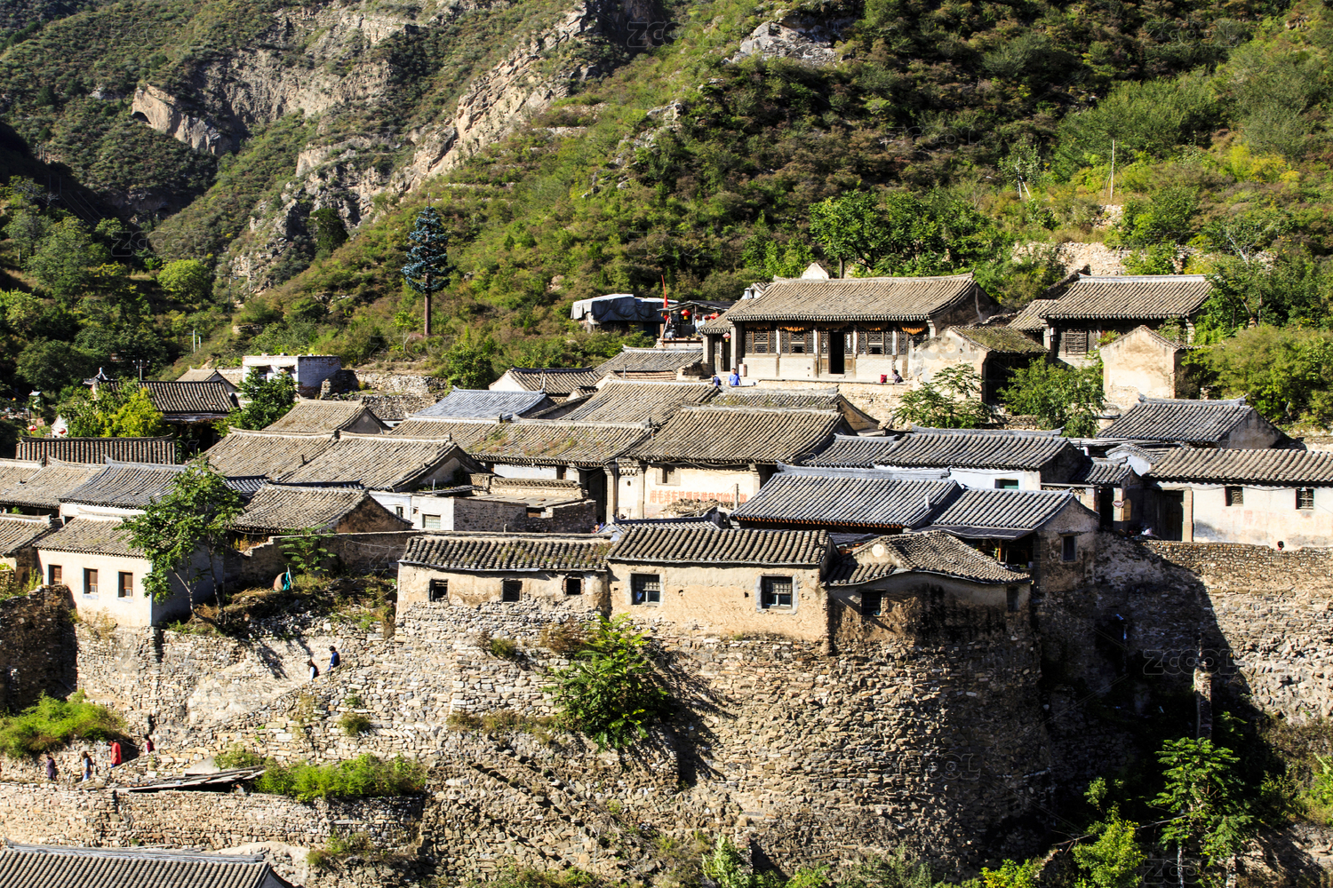 中国北京市密云区古北水镇小河边的砖石传统建筑