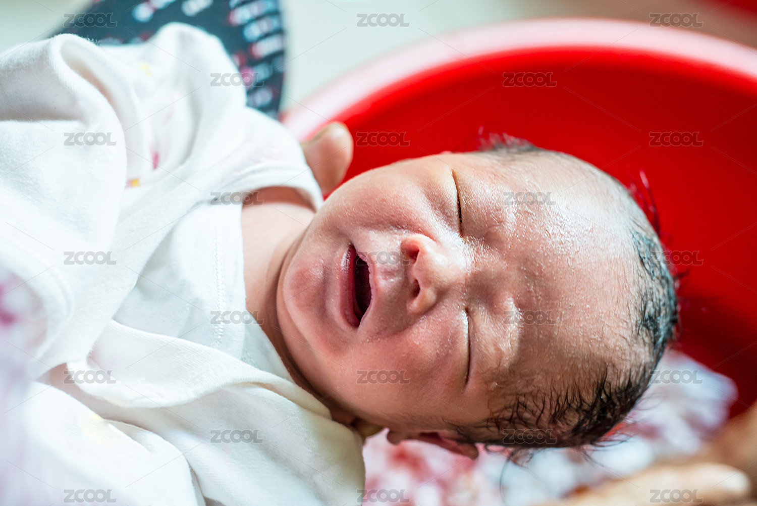 刚出生的中国籍婴儿在月子中心洗澡
