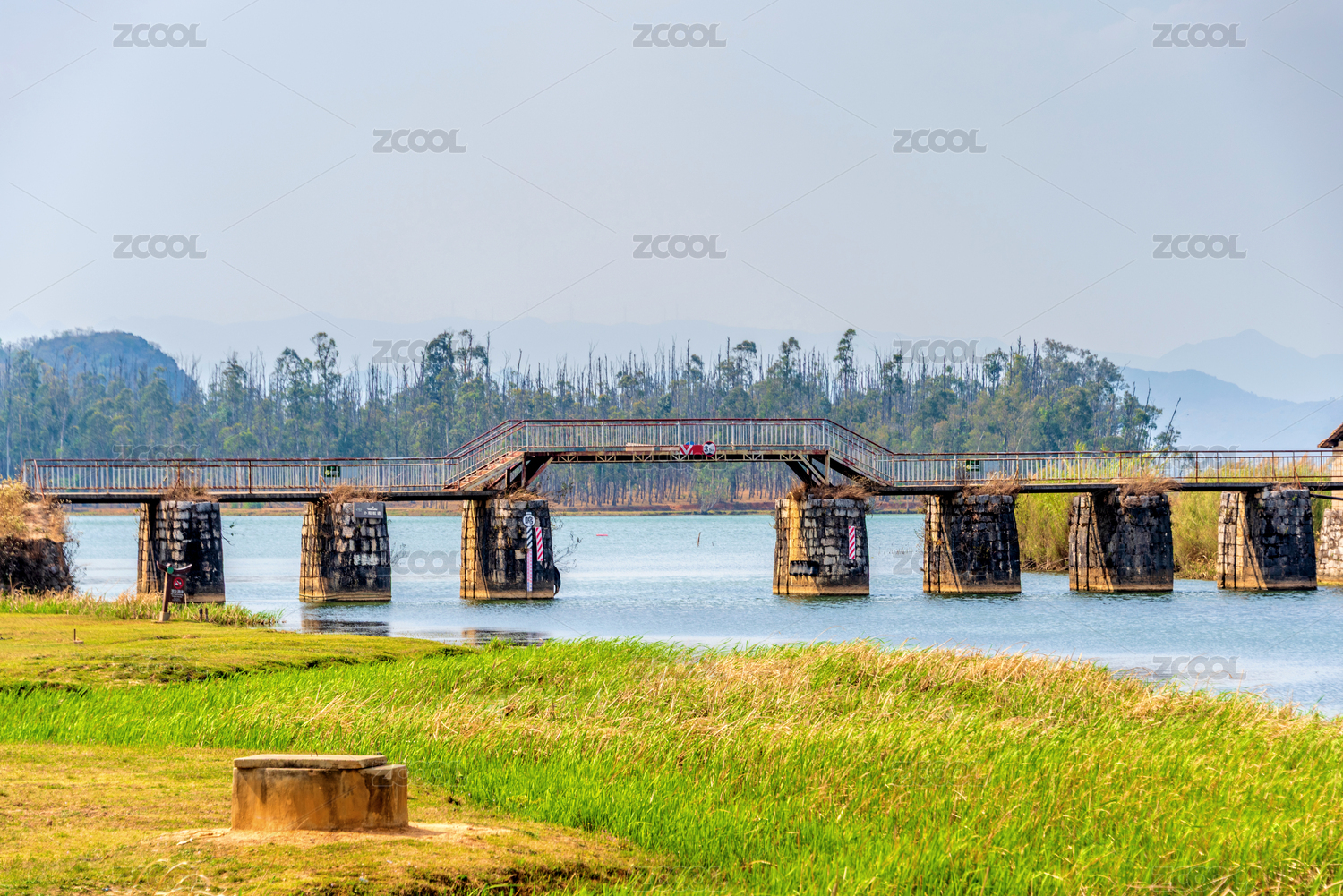 辽宁丹东鸭绿江河口断桥景区日落景色